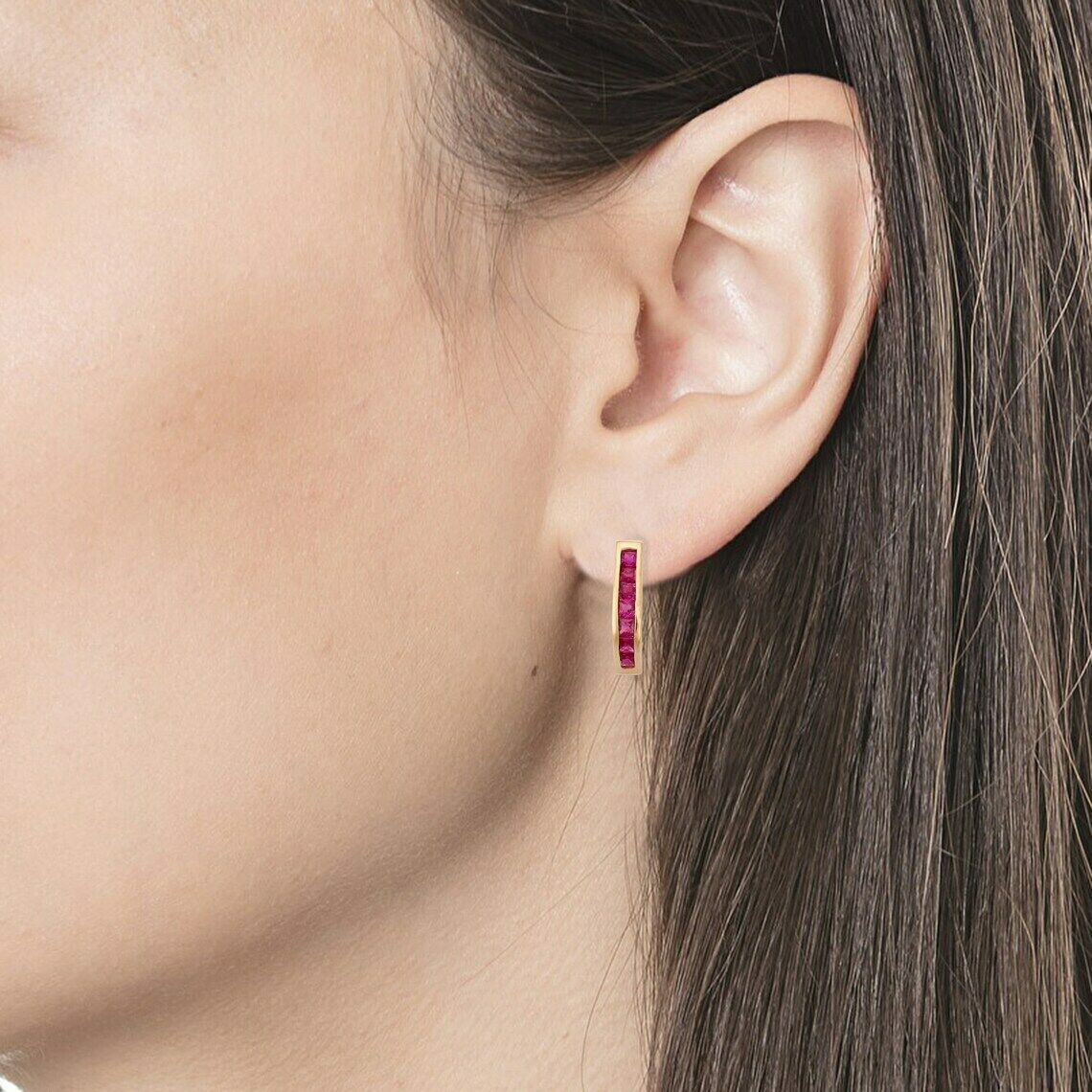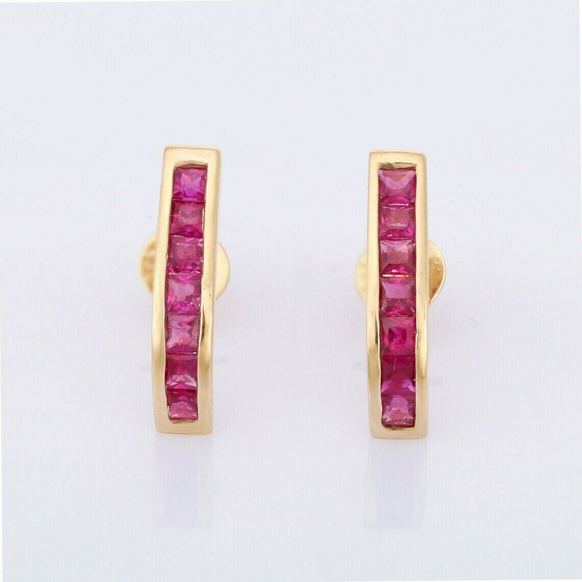 2ct Drop Earrings Princess Cut Pink Ruby Vertical Bar 14k Yellow Gold Finish