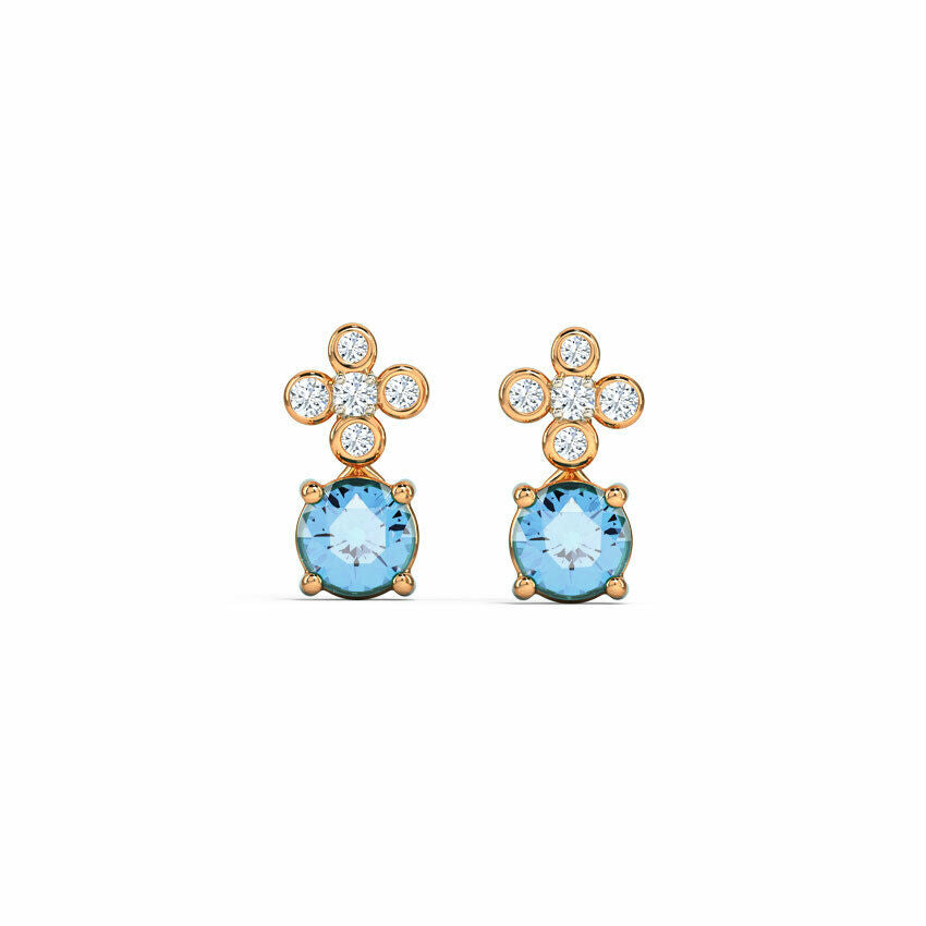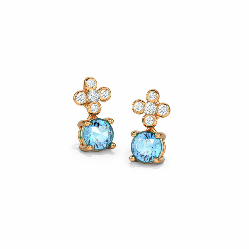 2ct Drop Earrings Round Cut Aquamarine Partywear Design 14k Rose Gold Finish