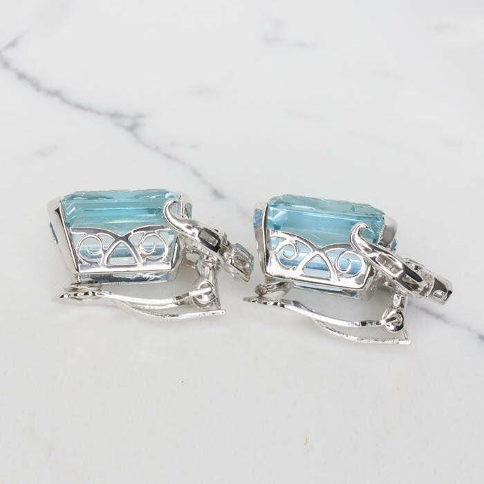 2Ct Emerald Blue Aquamarine Diamond Art Deco Stud Earrings 14K White Gold Finish