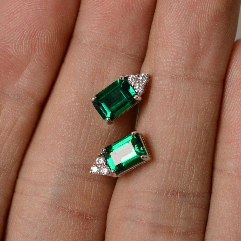 2ct Emerald Cut Green Emerald Diamond Elegant Stud Earrings 14k WhiteGold Finish