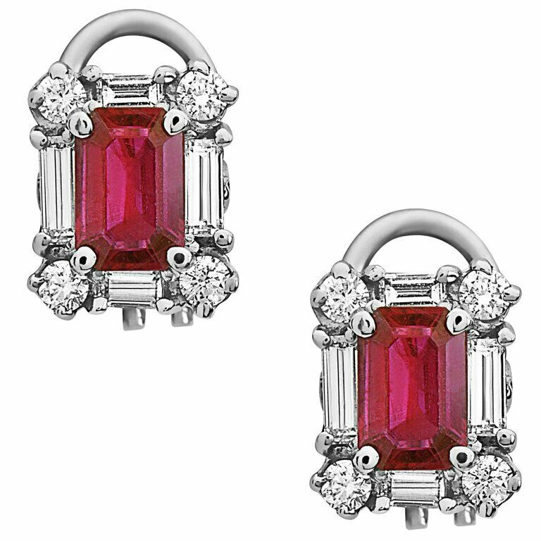 2ct Emerald Cut Pink Ruby Halo Diamond Women Stud Earrings 14k White Gold Finish
