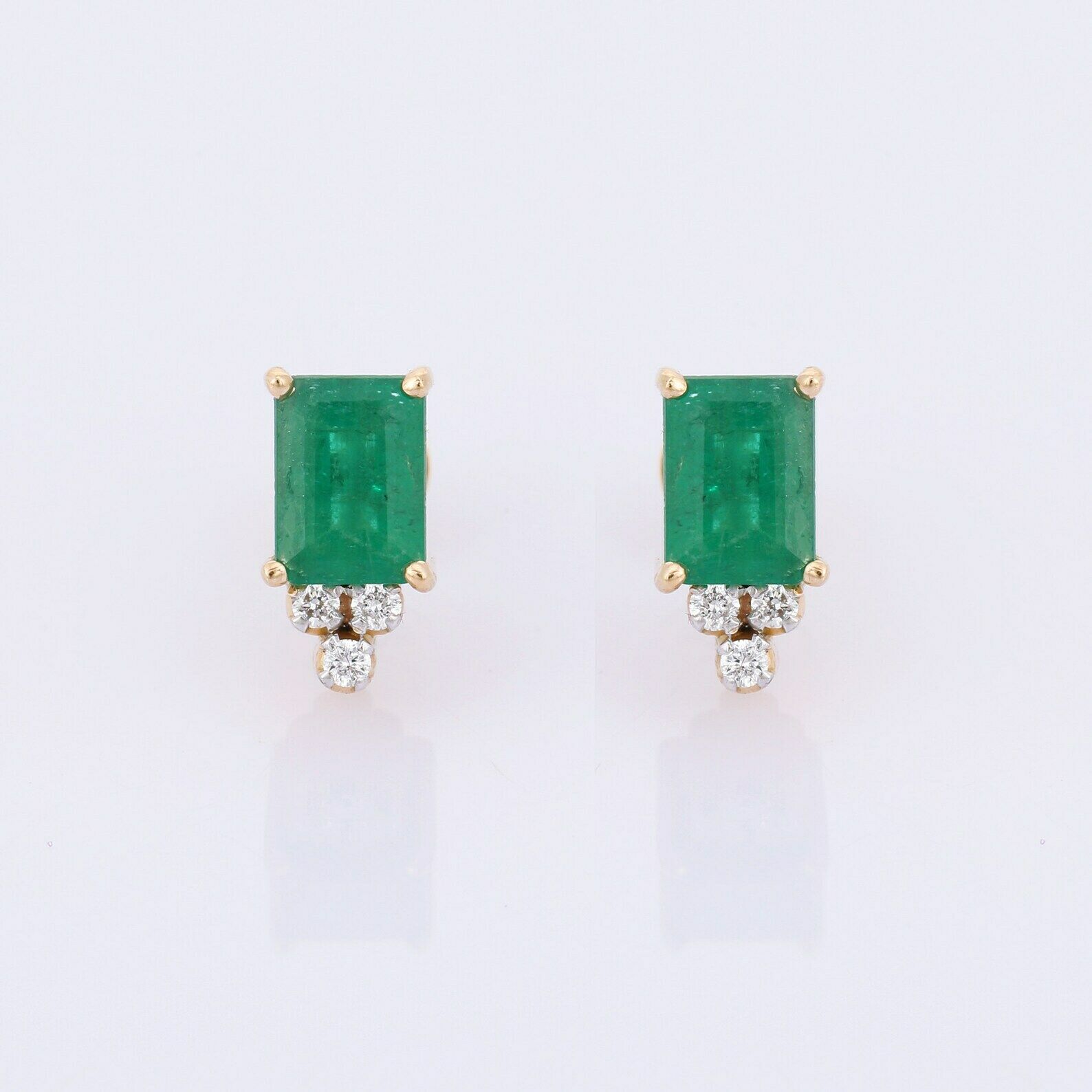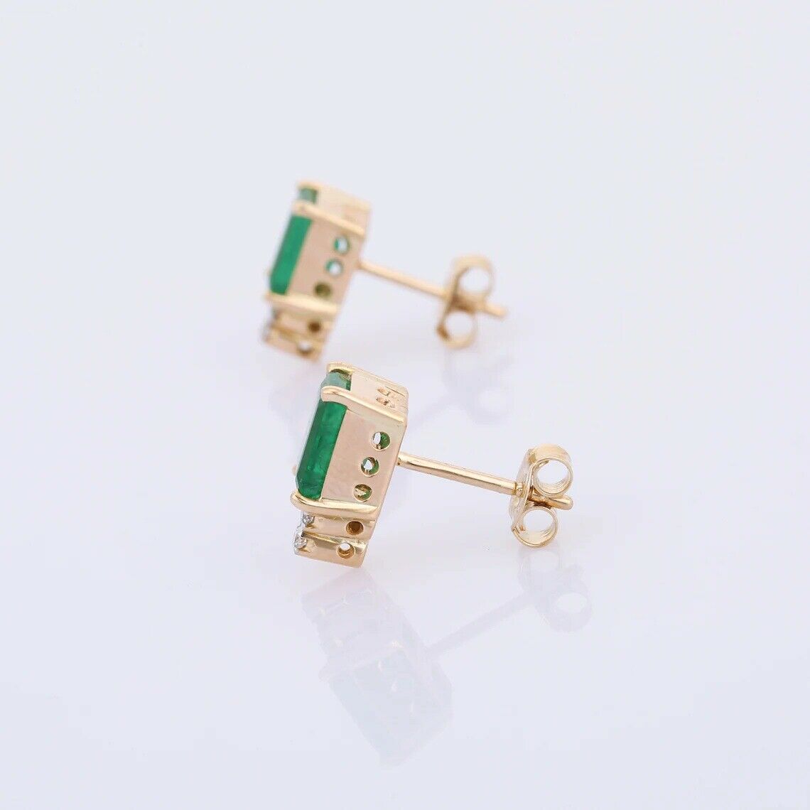2ct Green Emerald Cut Diamond Elegant Women Stud Earrings 14k Yellow Gold Finish