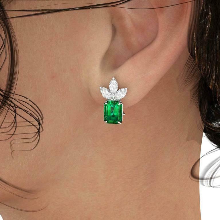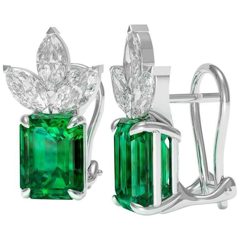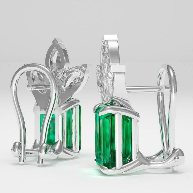 2ct Green Emerald Cut French Back Solitaire Stud Earrings 14k White Gold Finish