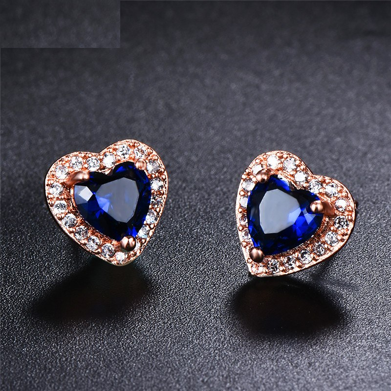 2ct Heart Cut Blue Sapphire Halo Heart Shape Stud Earrings 14k Rose Gold Finish