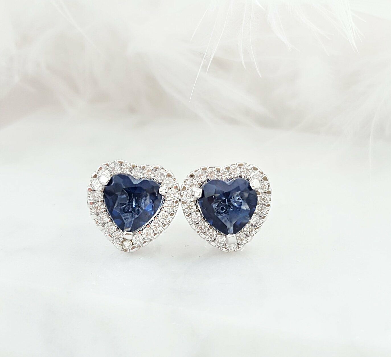 2ct Heart Cut Blue Sapphire Halo Love Stud Women Earrings 14k White Gold Finish