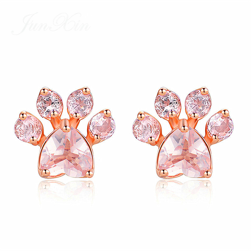 2ct Heart Cut Peach Morganite Dog Pet Bear Paw Stud Earrings 14k RoseGold Finish