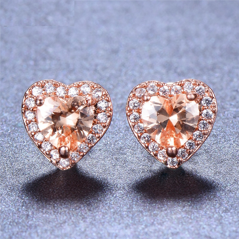 2ct Heart Cut Peach Morganite Halo Heart Shape Stud Earrings 14k RoseGold Finish