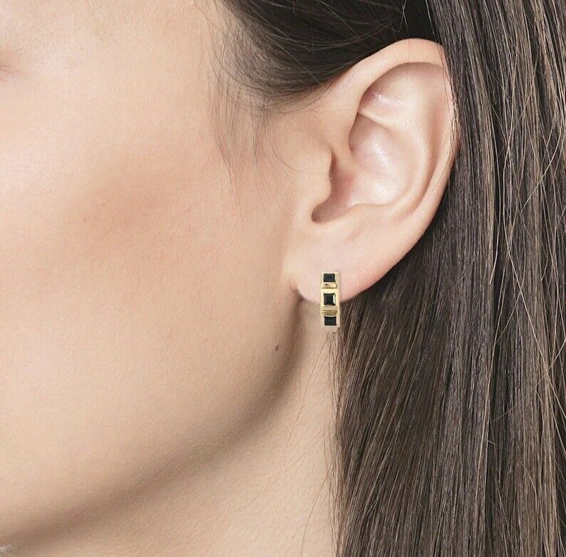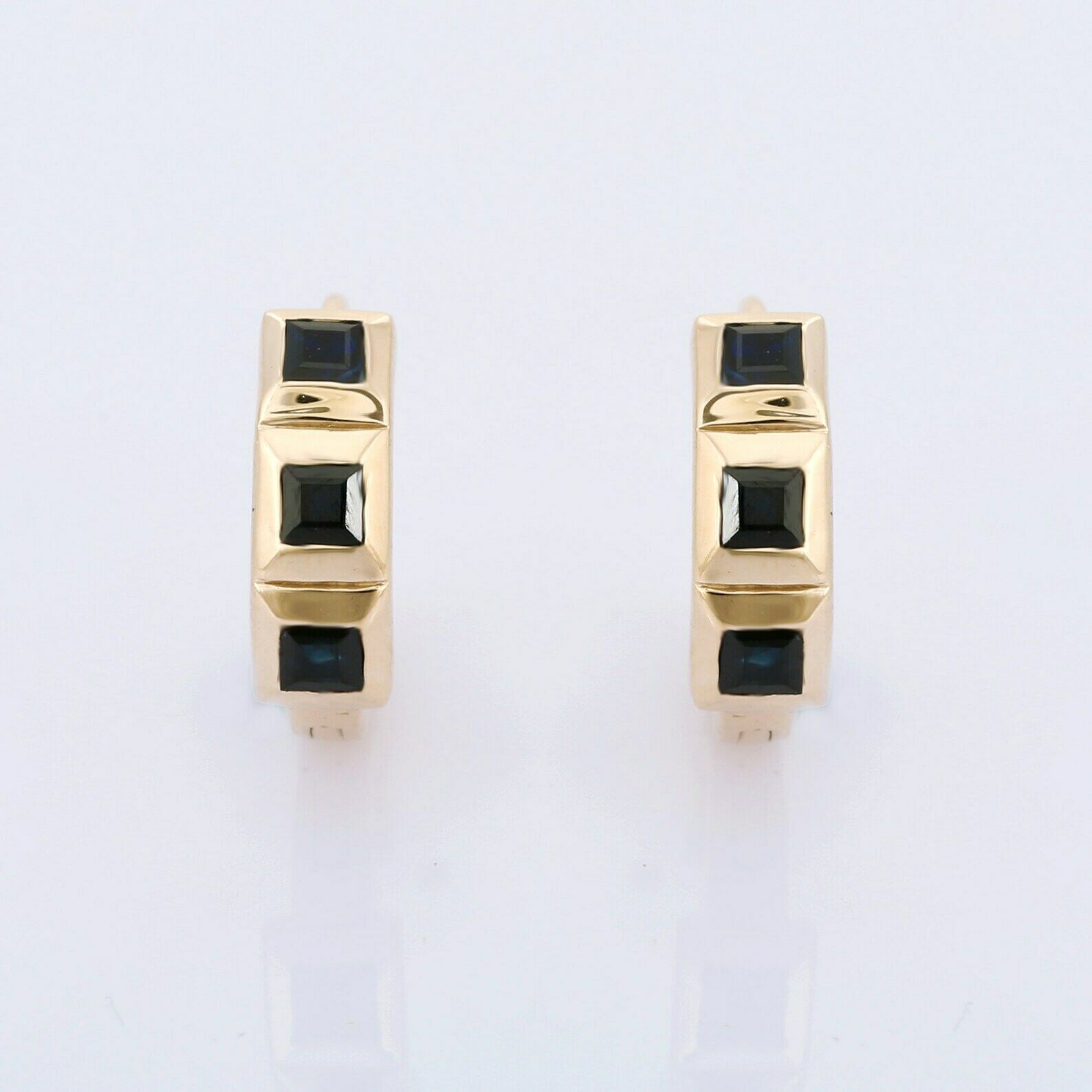 2ct Hoop Earrings Princess Cut Blue Sapphire Tiles Design 14k Yellow Gold Finish