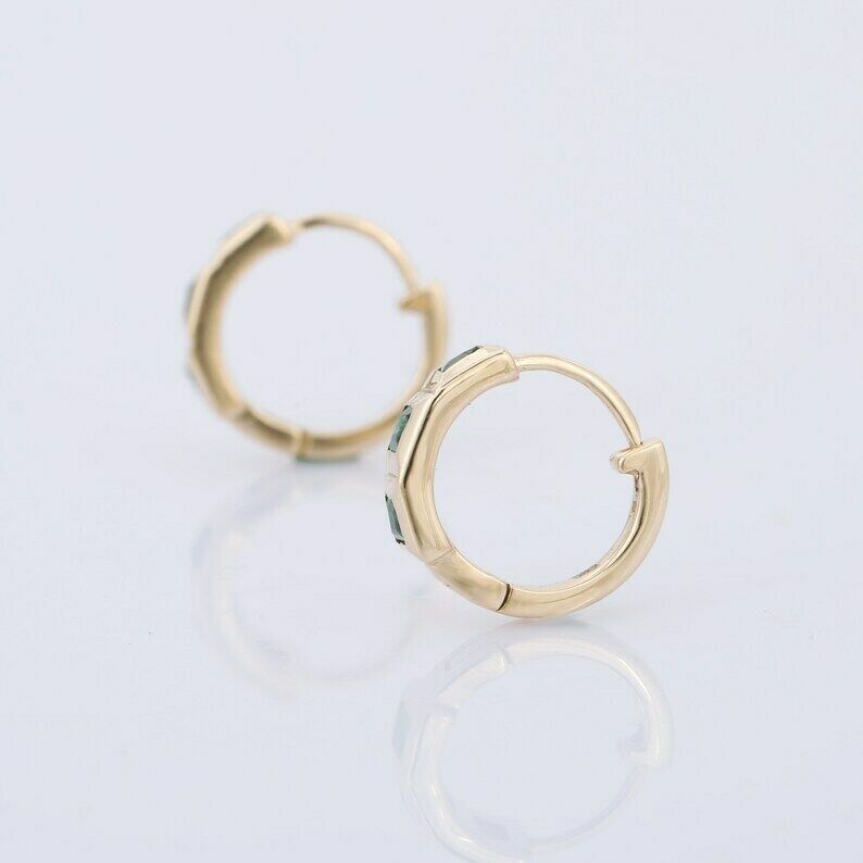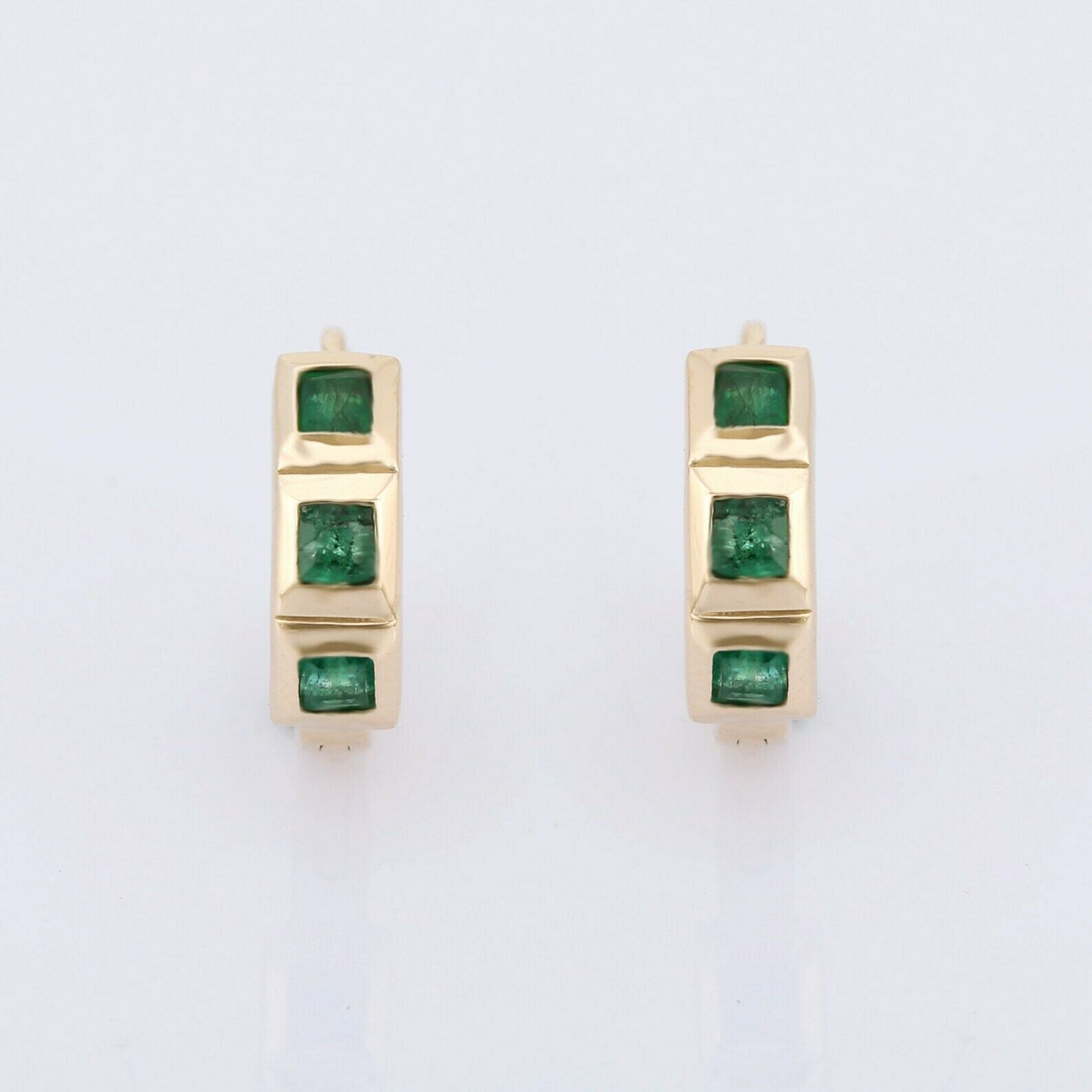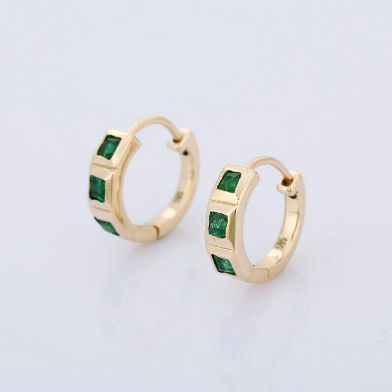 2ct Hoop Earrings Princess Cut Green Emerald Tiles 14k Yellow Gold Finish