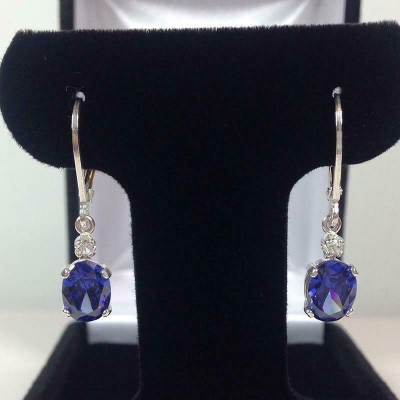 2Ct Oval Cut Blue Sapphire Diamond Elegant Drop Earrings 14K White Gold Finish