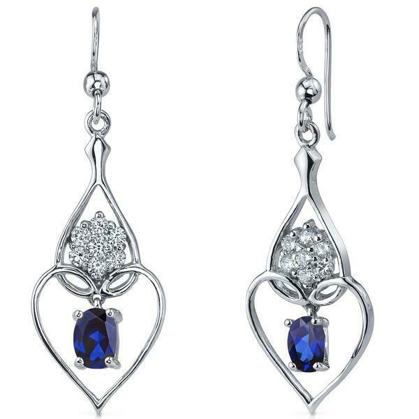 2Ct Oval Cut Blue Sapphire Diamond Heart Drop Earrings 14K White Gold Finish