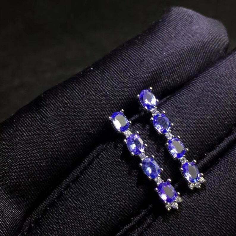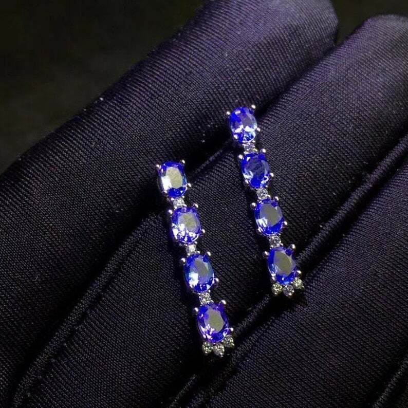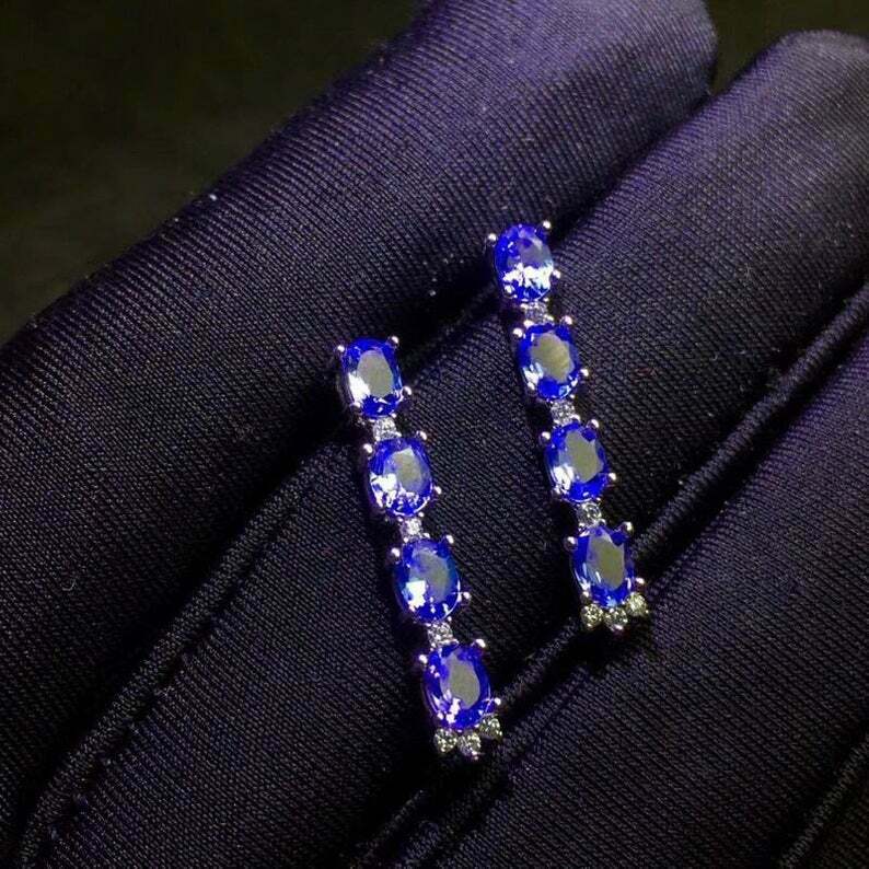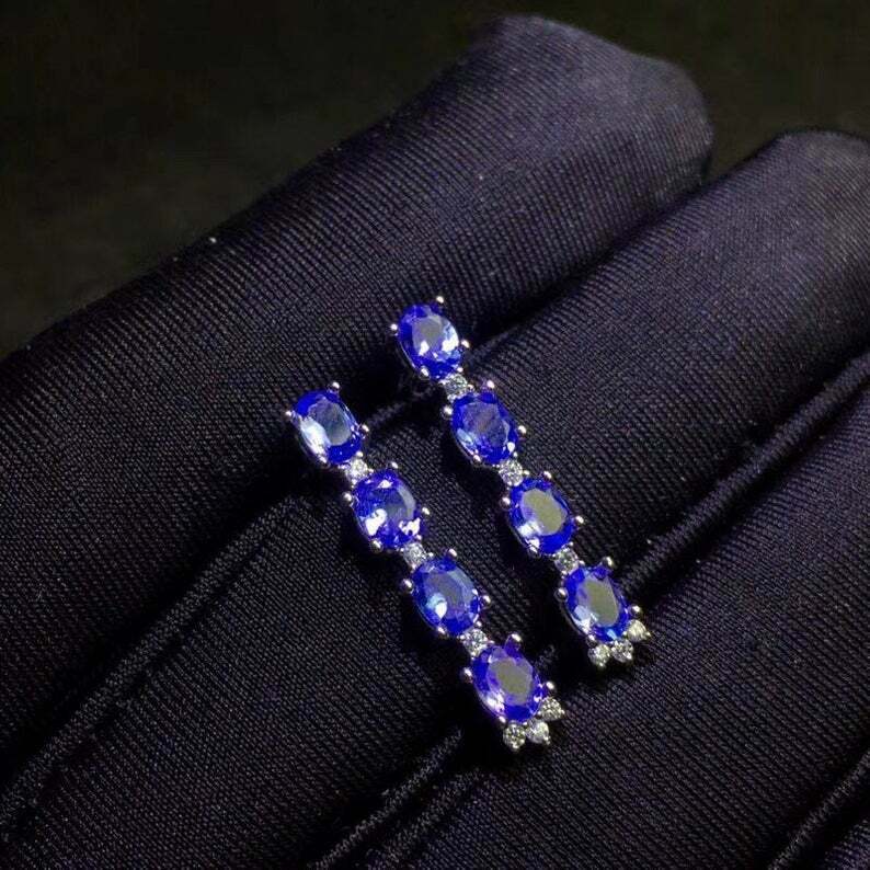 2ct Oval Cut Blue Sapphire Straight Drop Royal Earrings 14k White Gold Finish