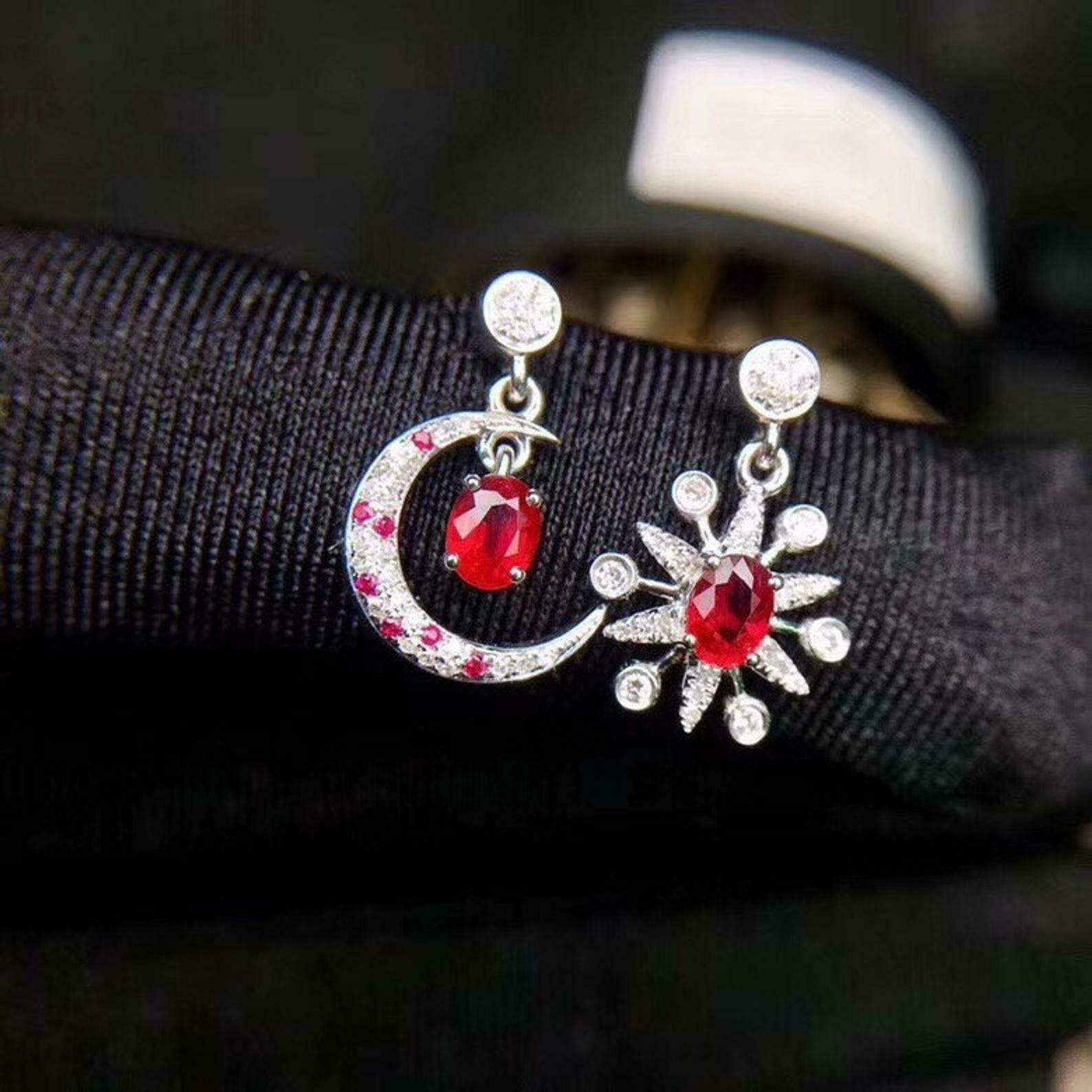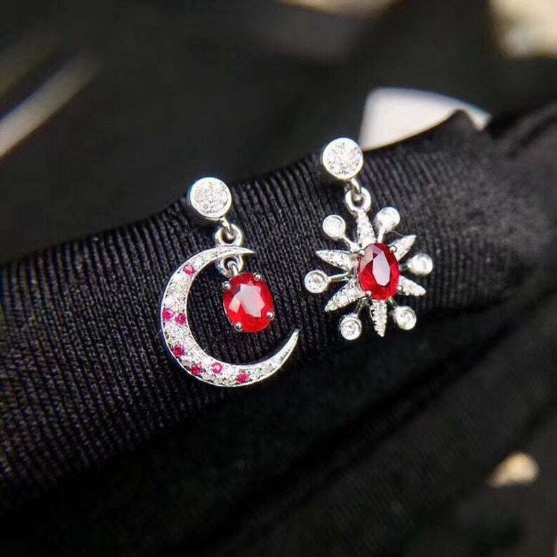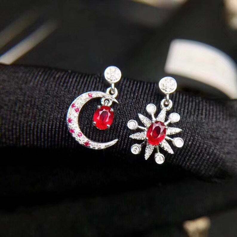 2ct Oval Cut Pink Ruby Crescent Star Design Drop Earrings 14k White Gold Finish
