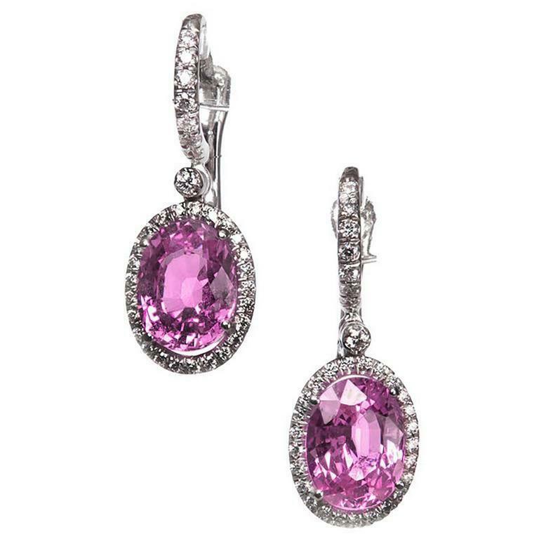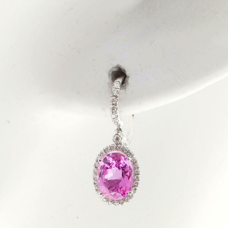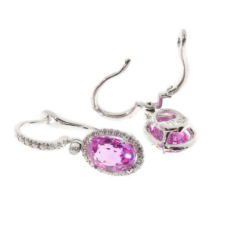2ct Oval Cut Pink Sapphire Diamond Halo Drop Earrings 14k White Gold Finish