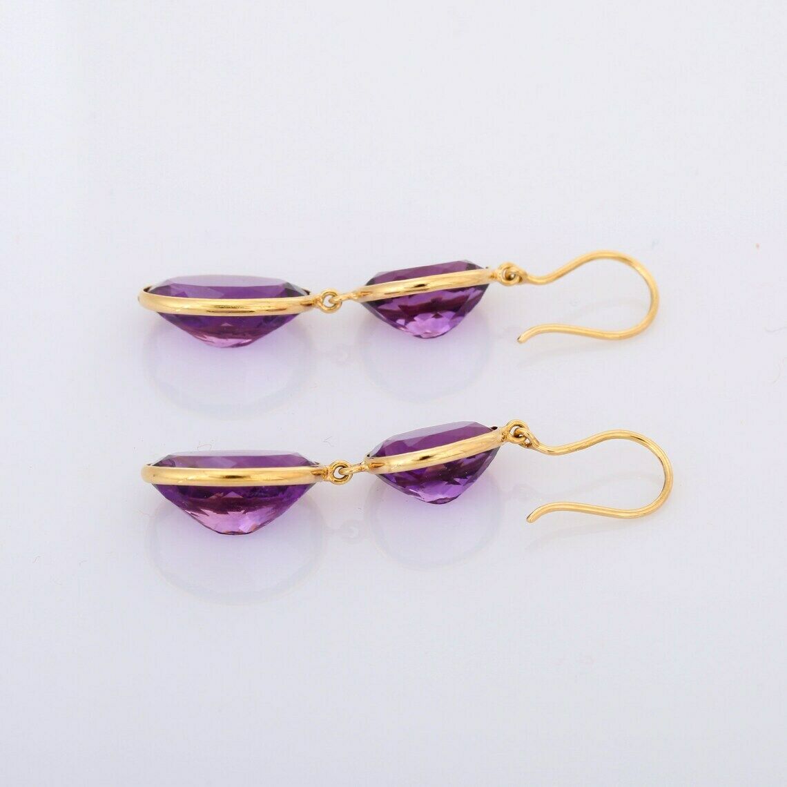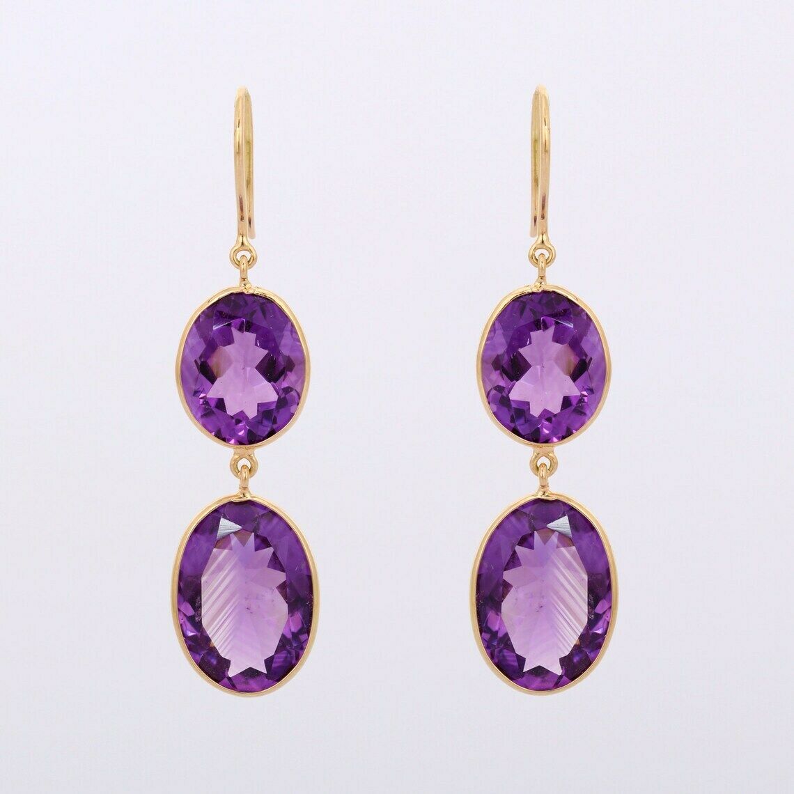 2ct Oval Cut Purple Amethyst Two Stone Drop Dangle Earrings 14k Yellow Gold Over