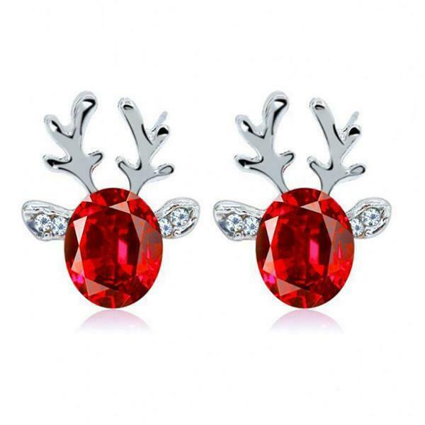 2Ct Oval Cut Red Garnet Diamond Deer Antler Stud Earrings 14K White Gold Finish