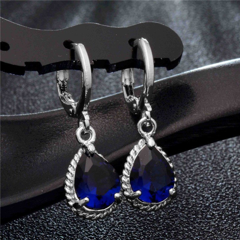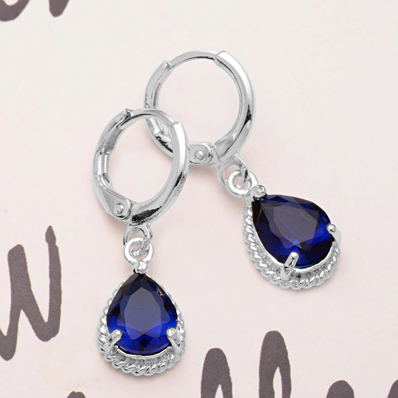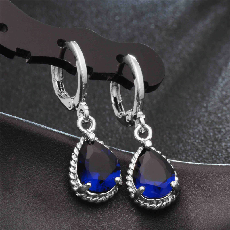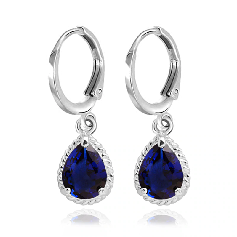 2Ct Pear Cut Blue Sapphire Solitaire Water Tear Drop Earring 14K White Gold Over