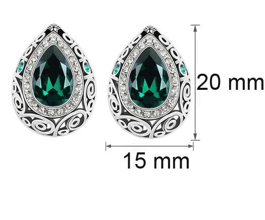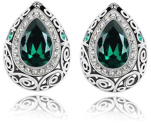2ct Pear Cut Green Emerald Antique Vintage Stud Earrings 14k White Gold Finish