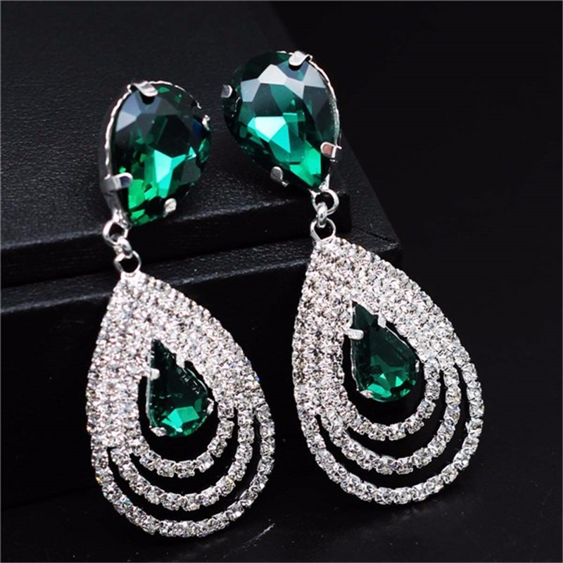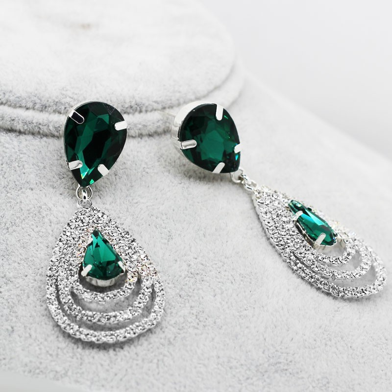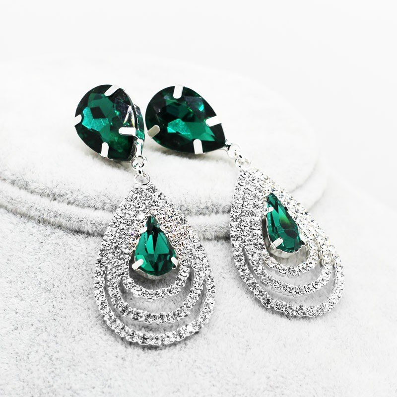 2ct Pear Cut Green Emerald Diamond Stylish Halo Drop Earrings 14k WhiteGold Over