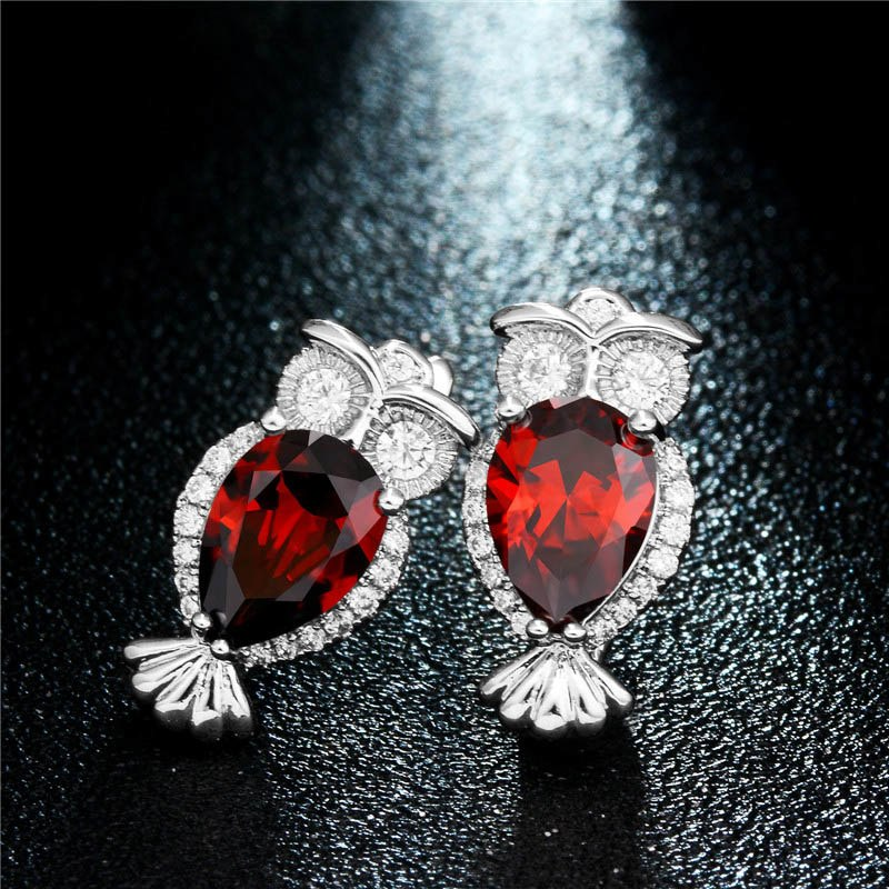 2Ct Pear Cut Red Garnet Lucky Owl Drop Earrings For Women 14K White Gold Finish