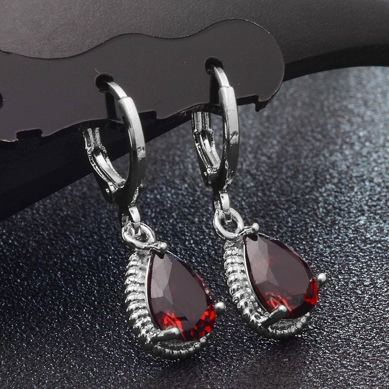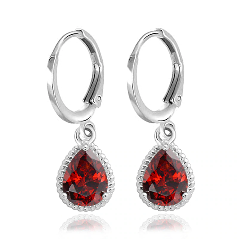 2Ct Pear Cut Red Garnet Solitaire Water Tear Drop Earring 14K White Gold Finish