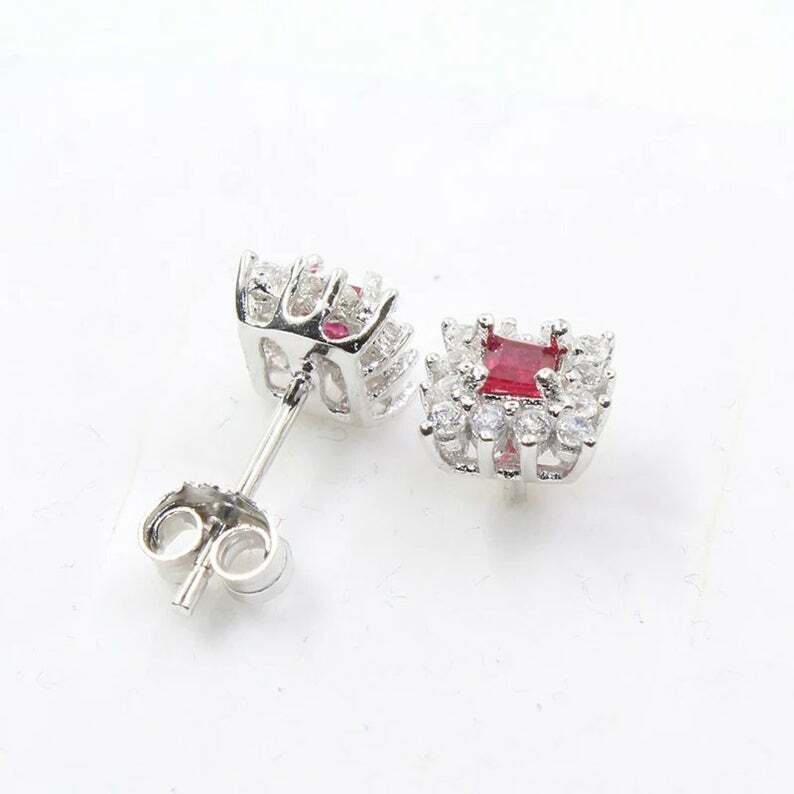2ct Princess Cut Pink Ruby Floral Halo Stud Women Earrings 14k White Gold Finish