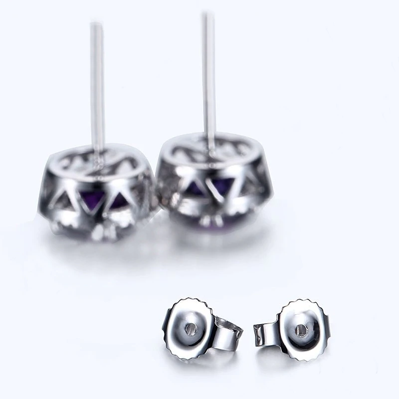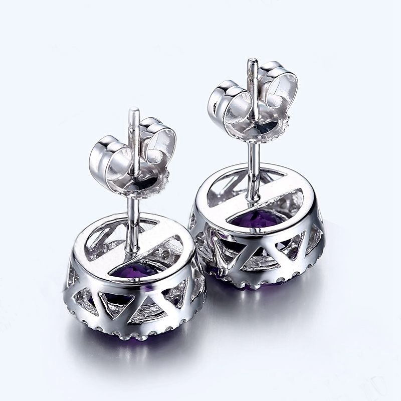 2ct Round Cut Purple Amethyst Halo Diamond Stud Earrings 14k White Gold Finish