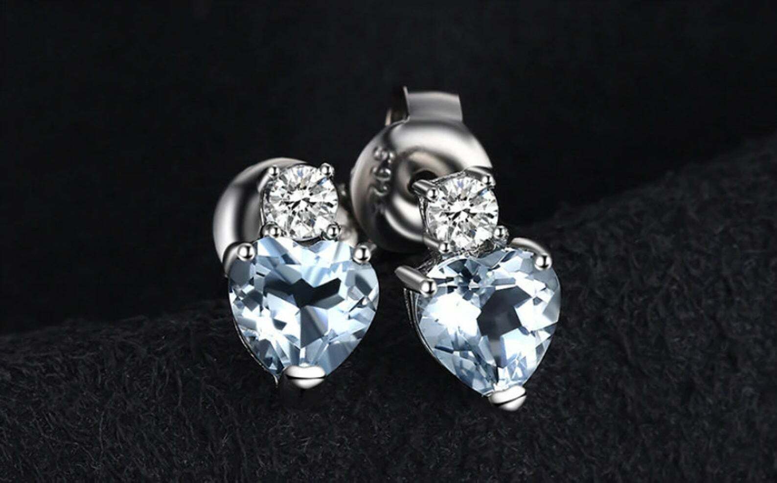 2ct Stud Earrings Heart Cut Blue Aquamarine Diamond Petite 14k White Gold Finish