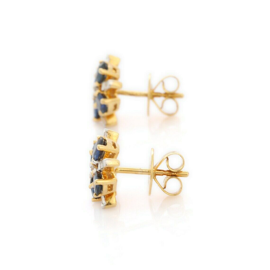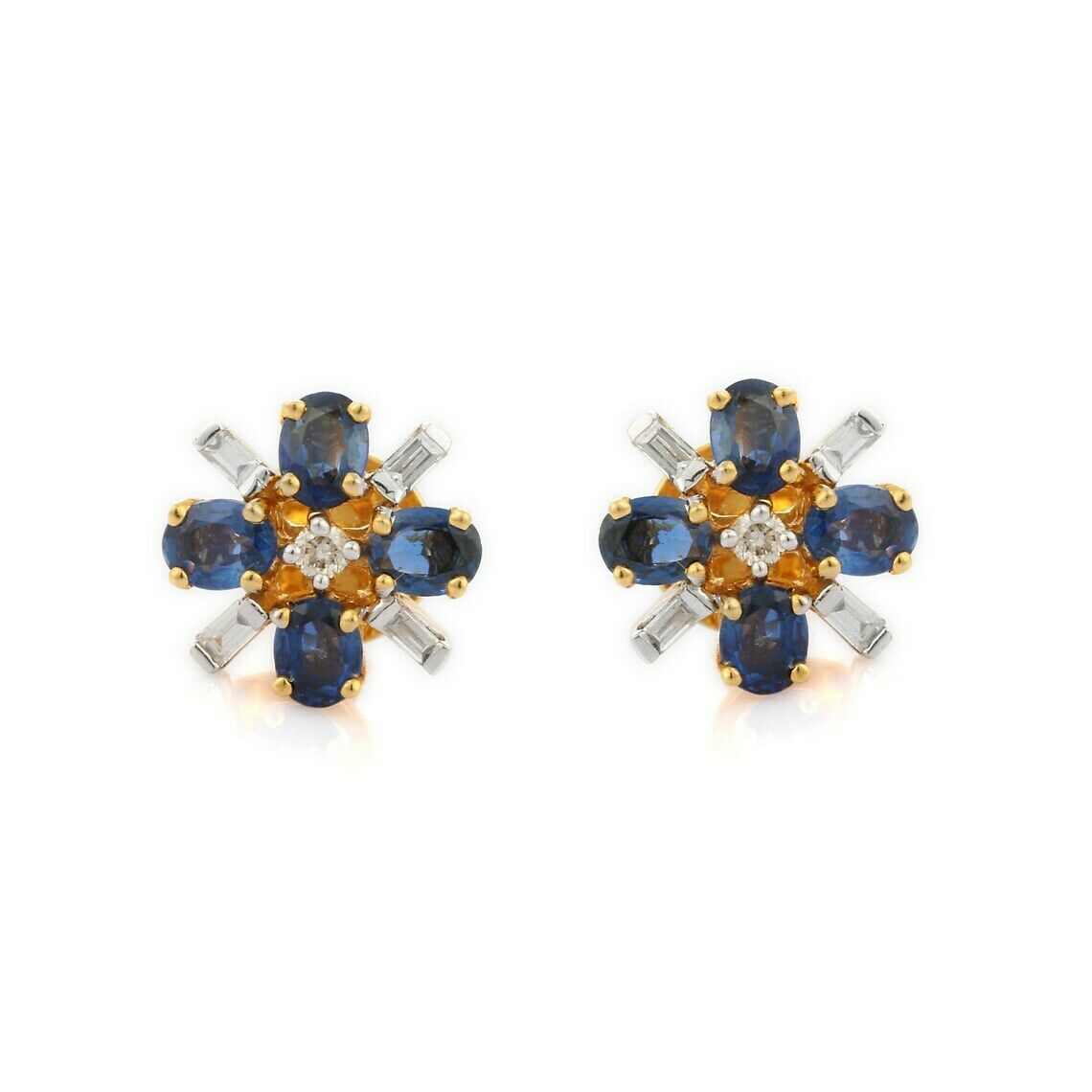 2ct Stud Earrings Oval Cut Blue Sapphire Geometric 14k Yellow Gold Finish