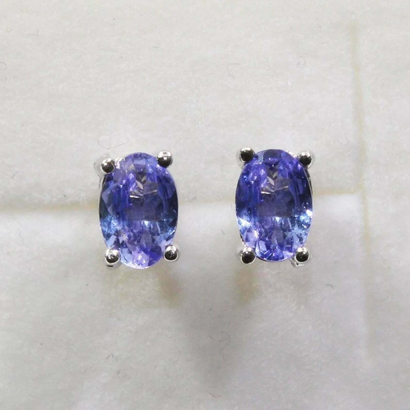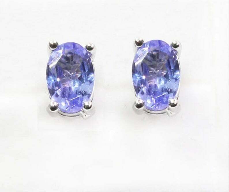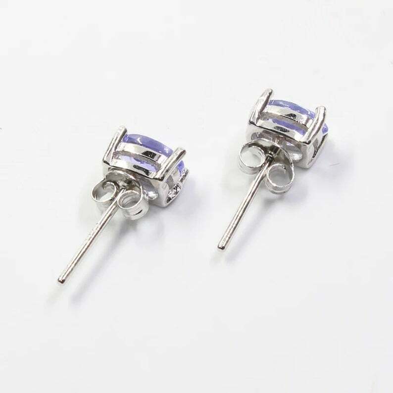 2ct Stud Earrings Oval Cut Blue Tanzanite Solitaire Design 14k White Gold Finish