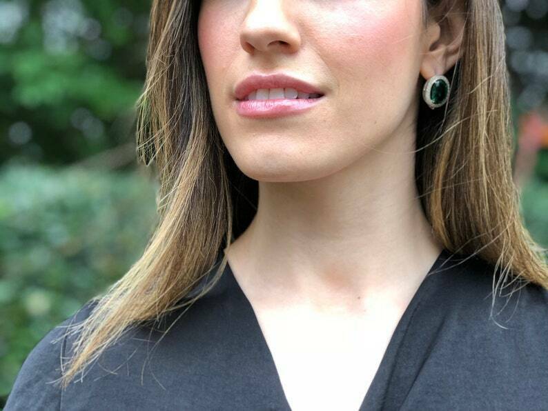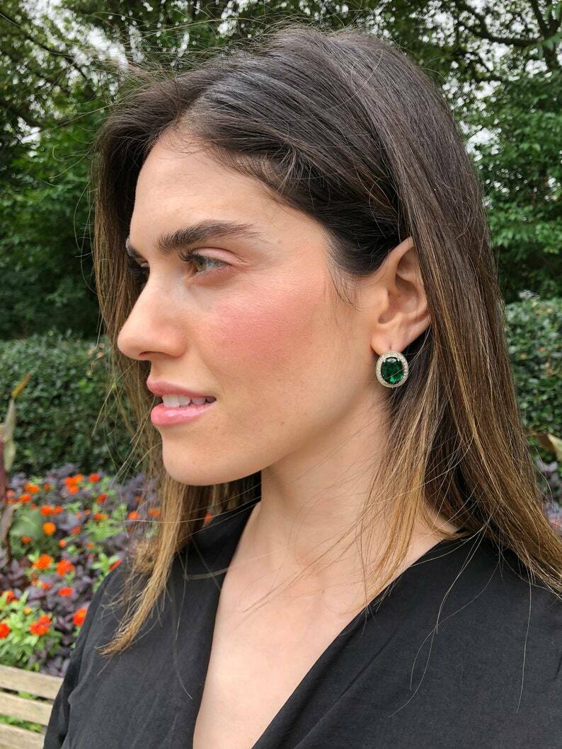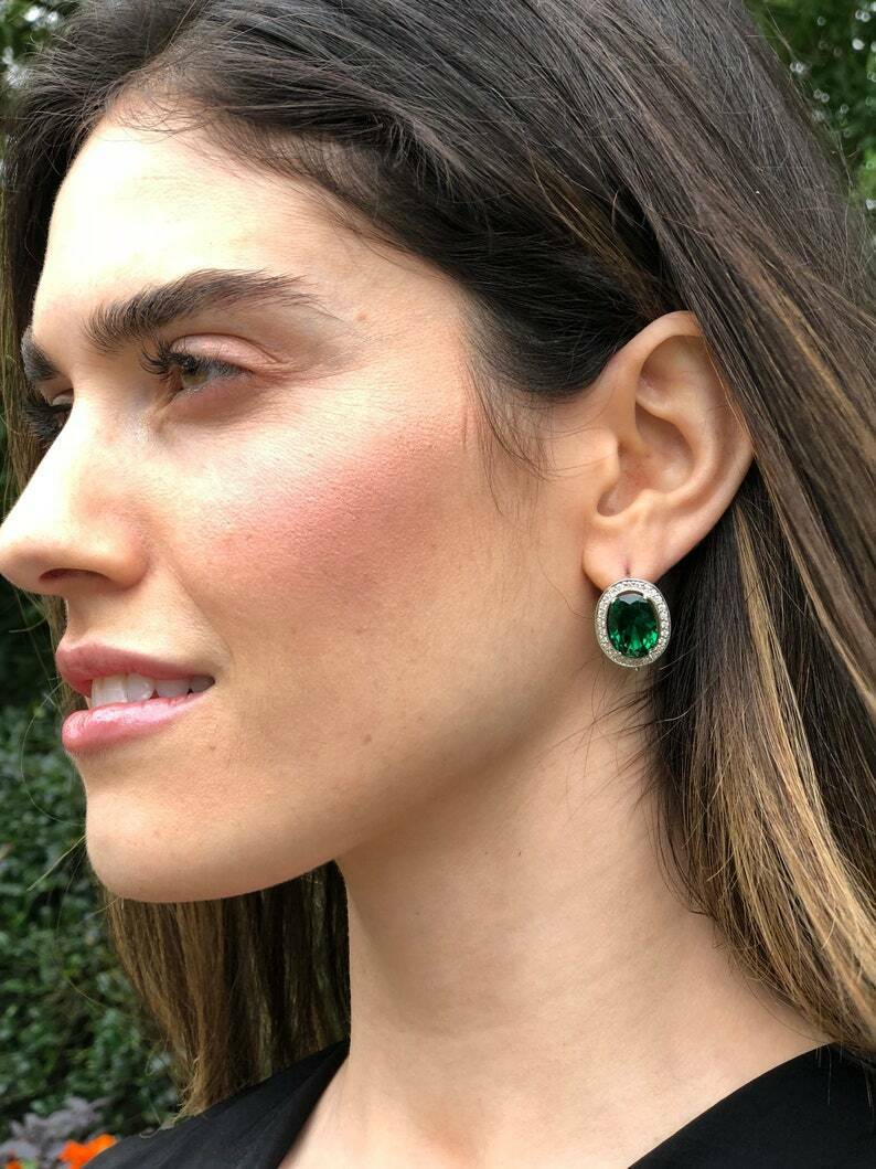 2ct Stud Earrings Oval Cut Green Emerald Diamond Halo Design 14k White Gold Over