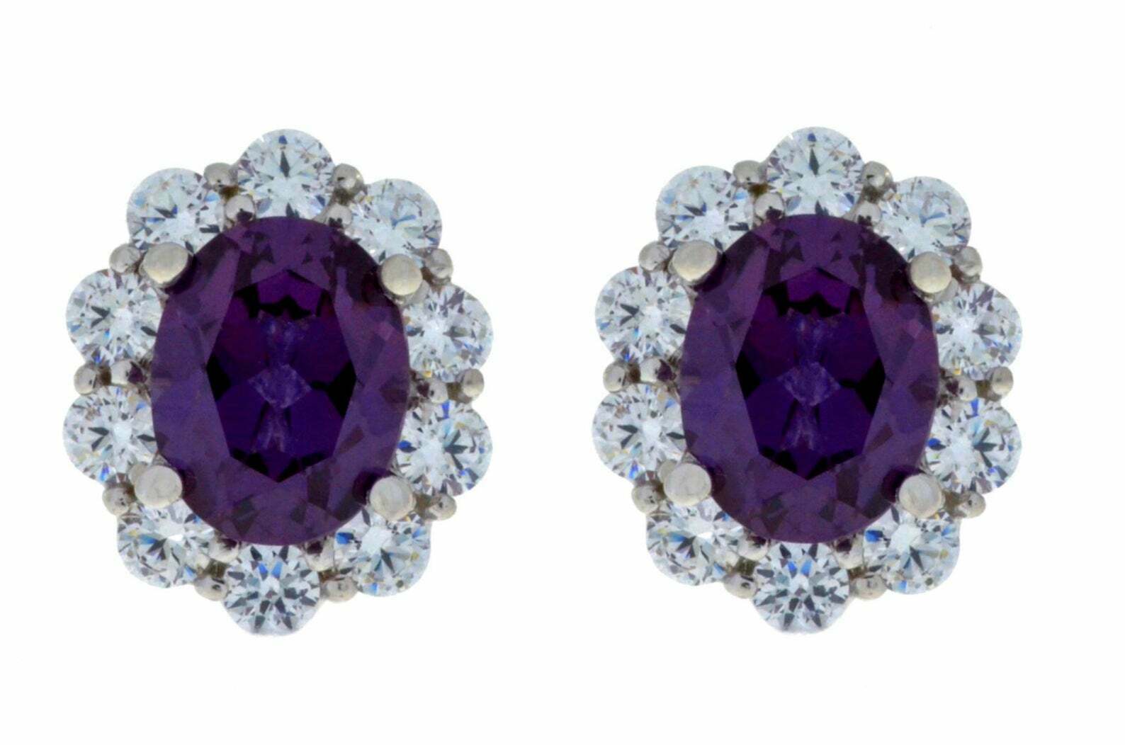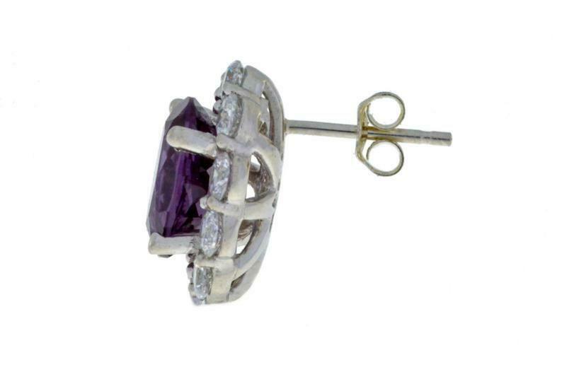 2ct Stud Earrings Oval Cut Purple Amethyst Diamond Halo 14k White Gold Finish