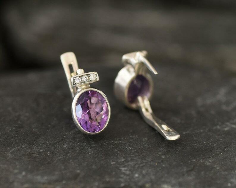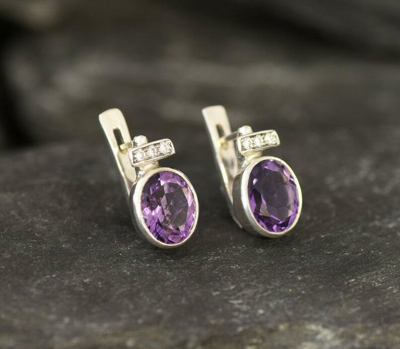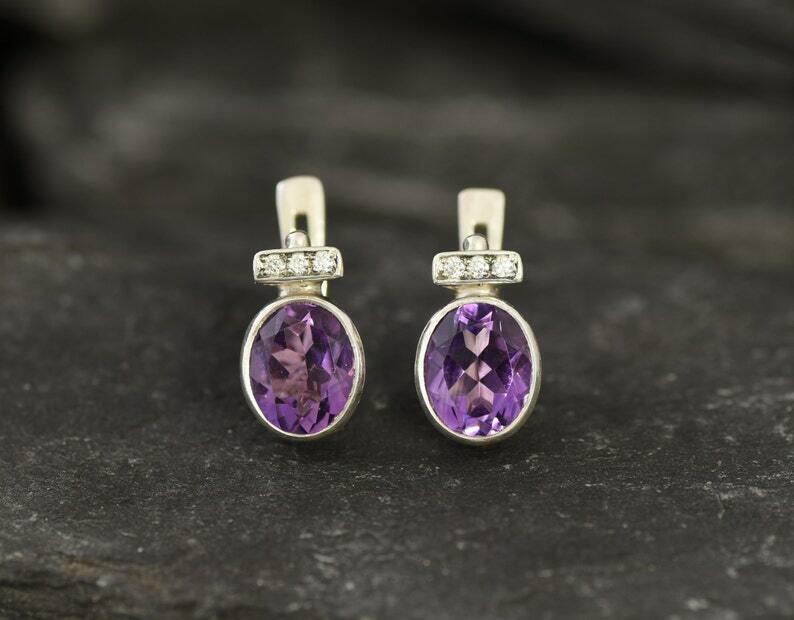 2ct Stud Earrings Oval Cut Purple Amethyst Stylish Party Wear 14k White Gold Over