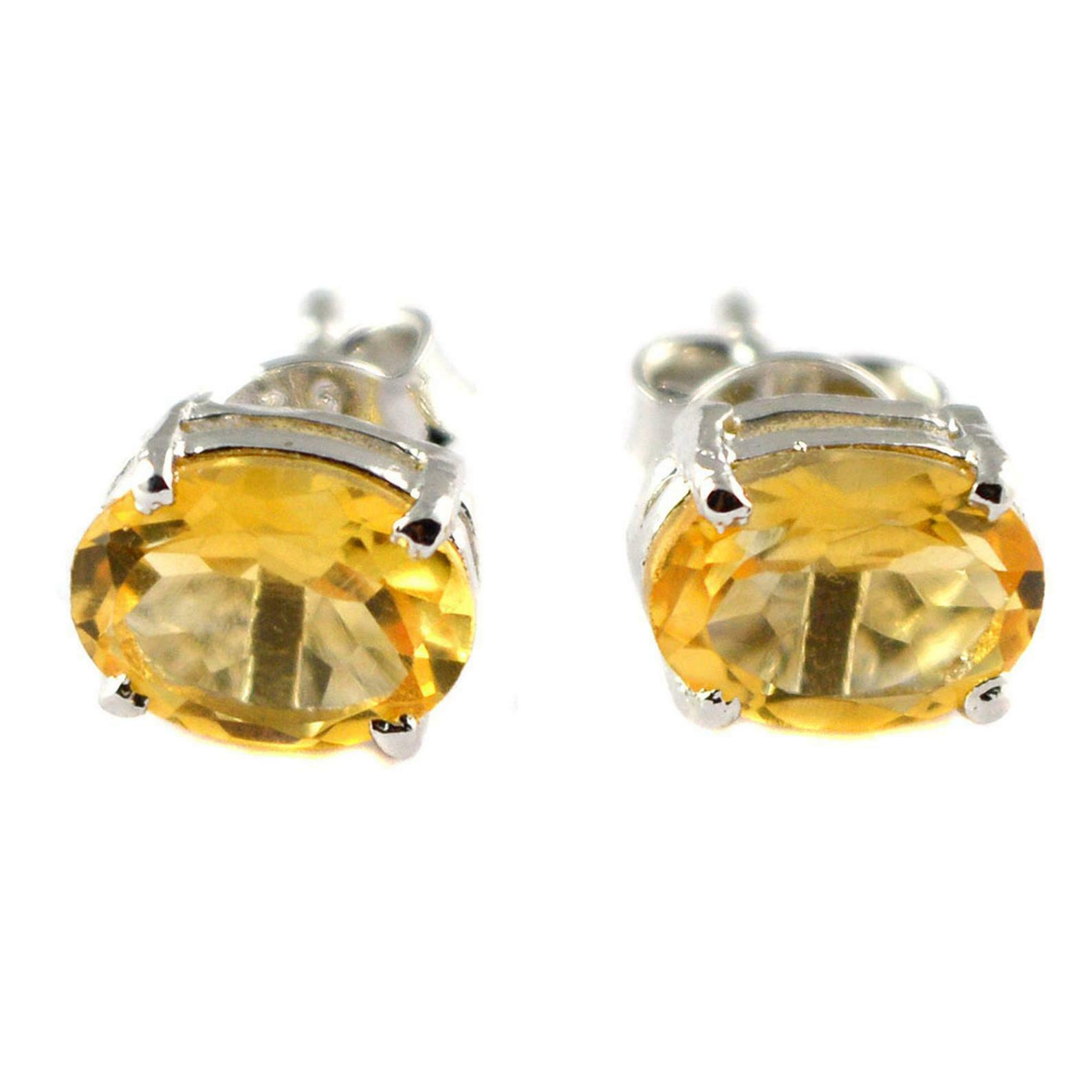 2ct Stud Earrings Oval Cut Yellow Citrine Solitaire Women 14k White Gold Finish
