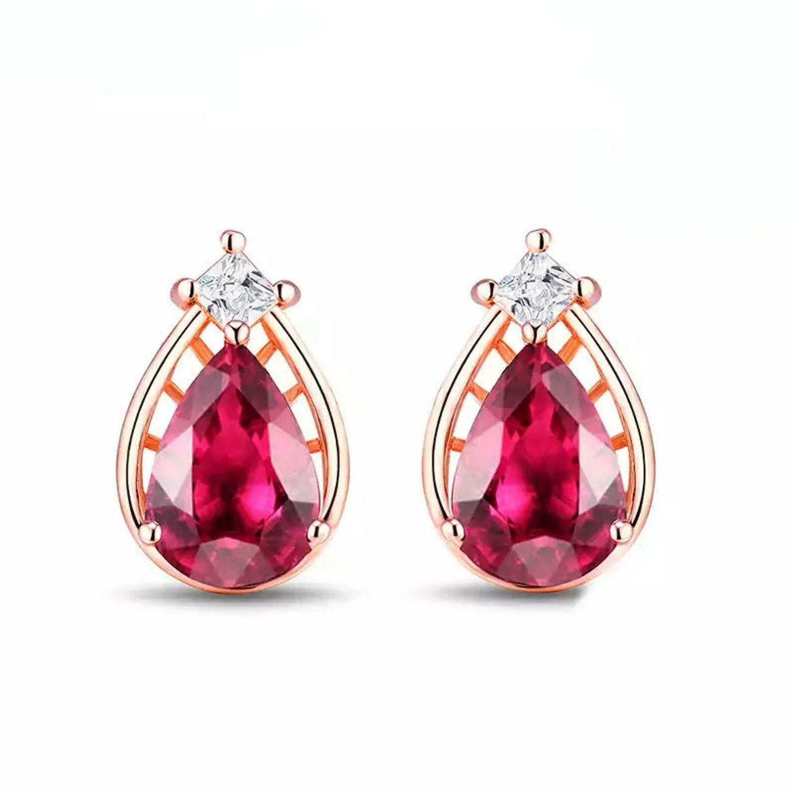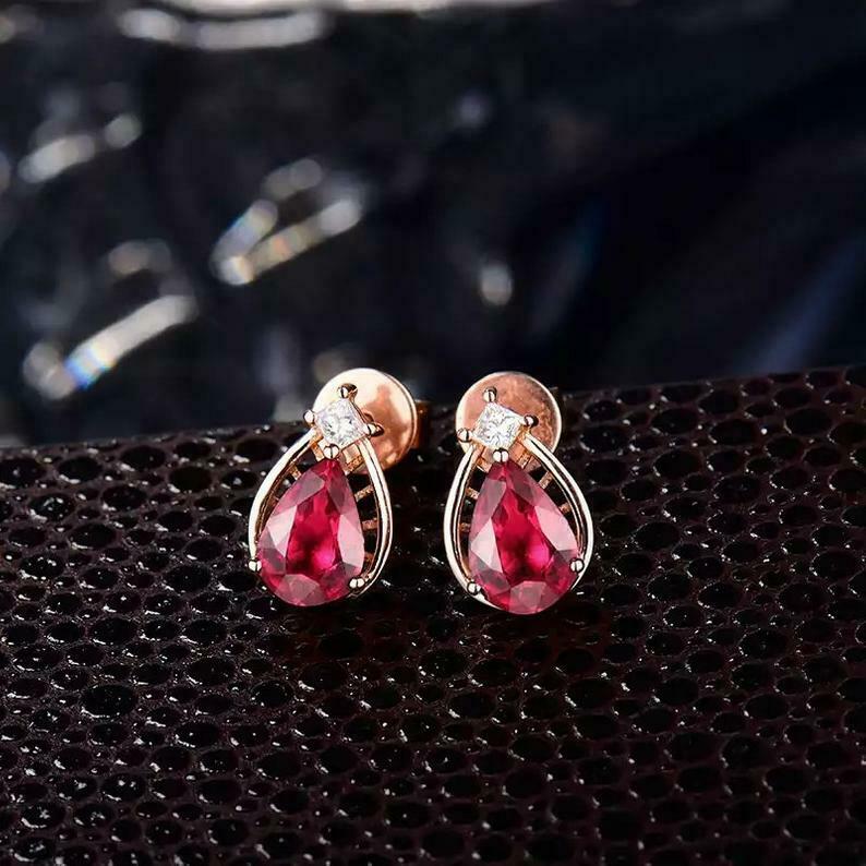 2ct Stud Earrings Pear Cut Pink Ruby Mesh Drop Design 14k Rose Gold Finish