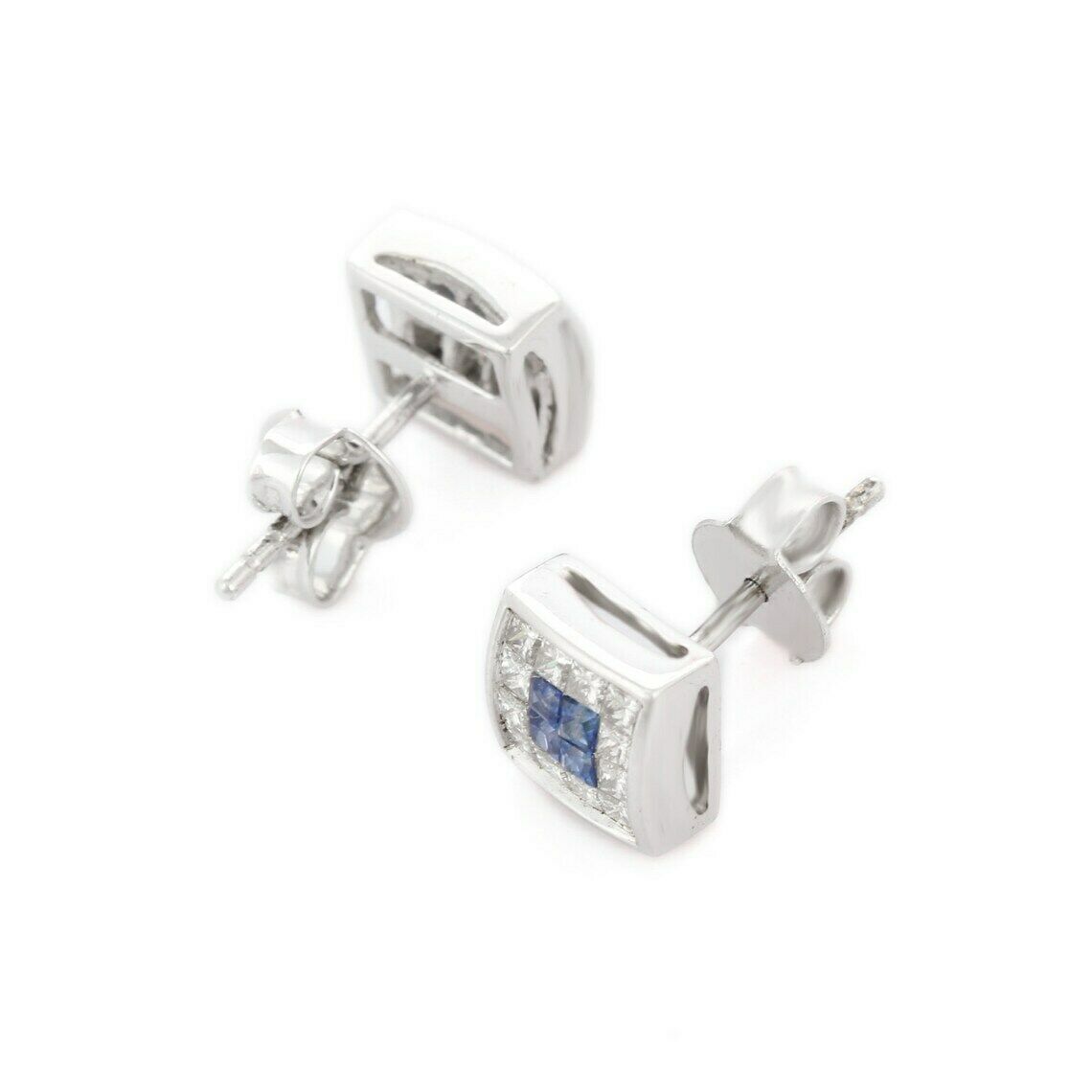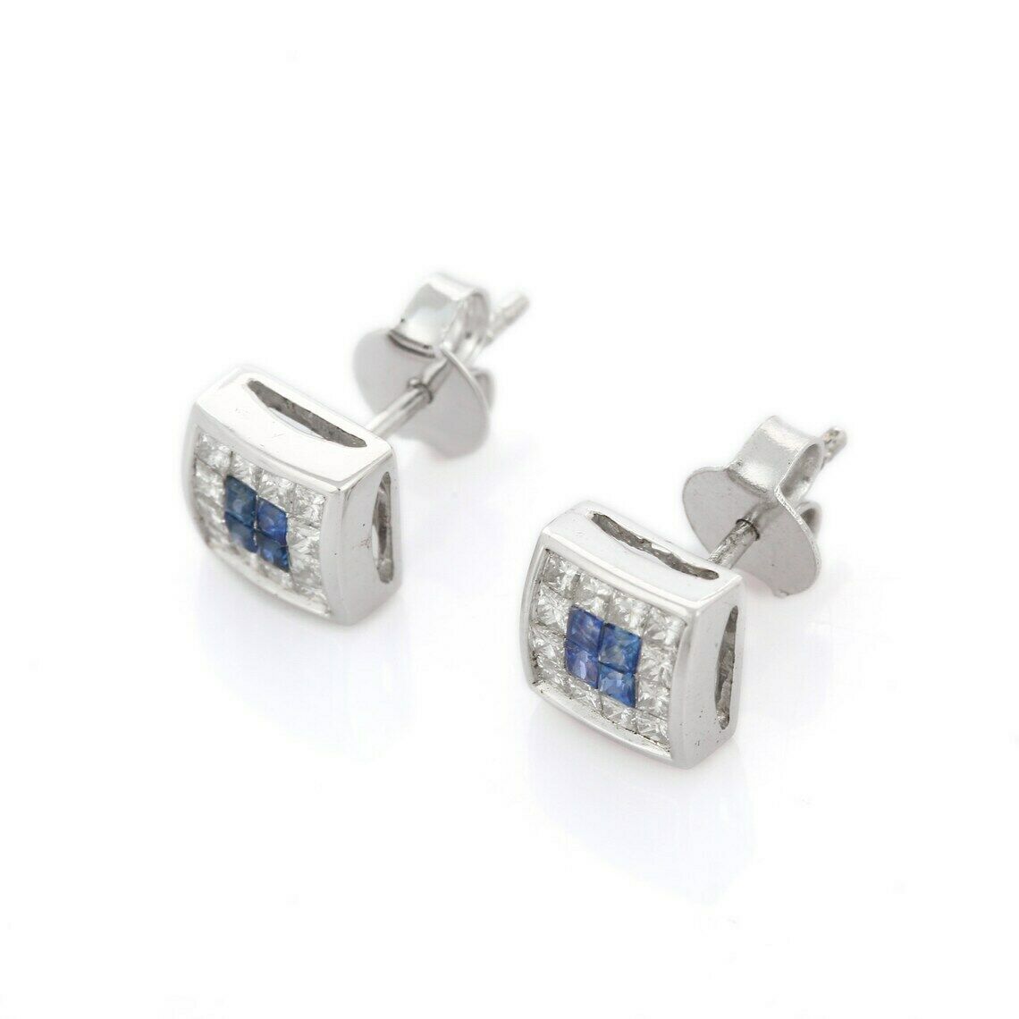2ct Stud Earrings Princess Cut Blue Sapphire Square Cluster 14k WhiteGold Finish