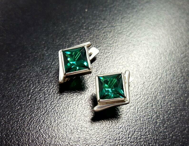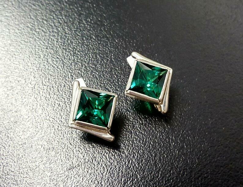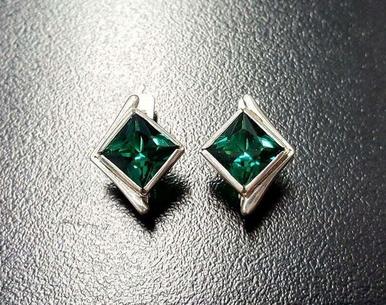 2ct Stud Earrings Princess Cut Emerald Rhombus Solitaire 14k White Gold Finish