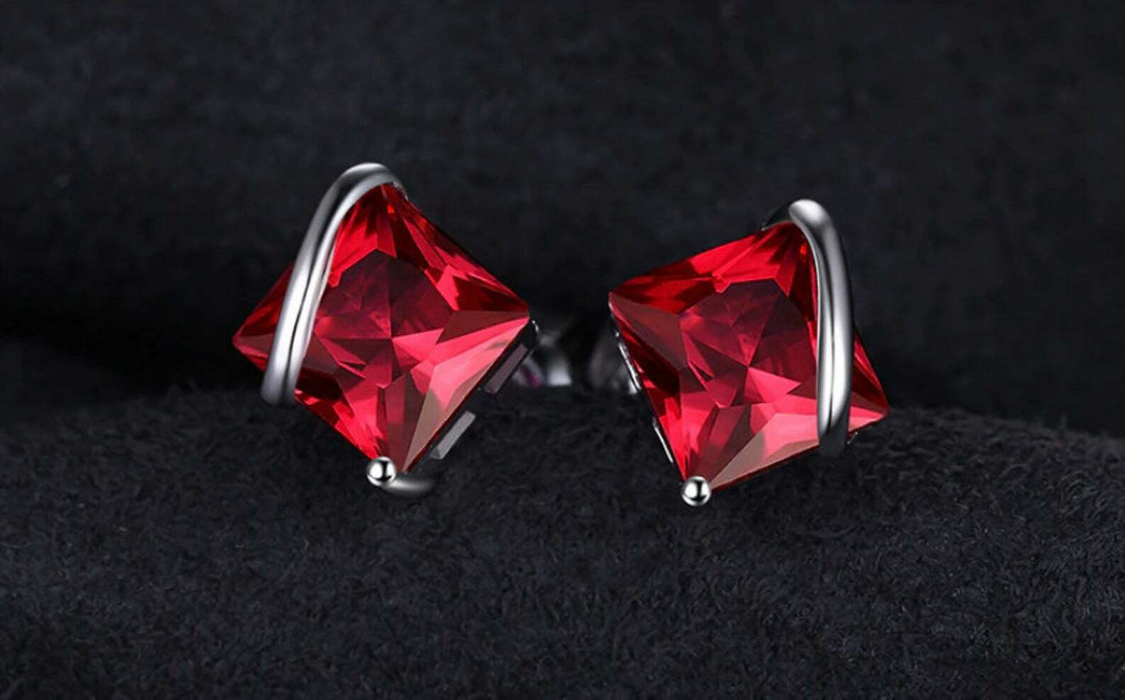 2ct Stud Earrings Princess Cut Ruby Stylish Solitaire 14k White Gold Finish