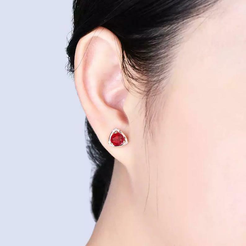 2ct Stud Earrings Round Cut Pink Ruby Triangular Design 14k Rose Gold Finish