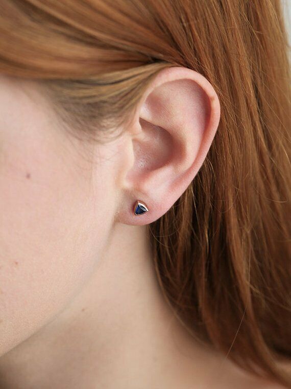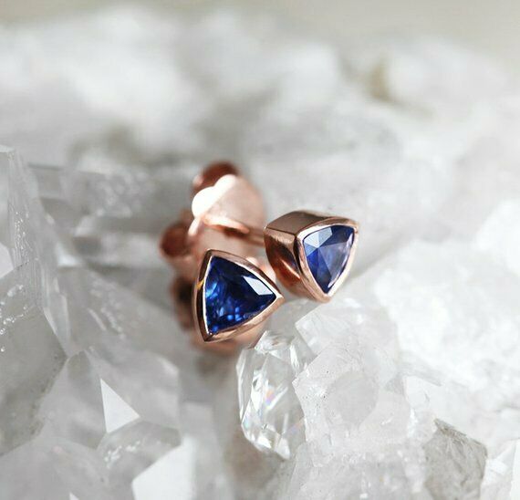 2ct Trillion Cut Blue Sapphire Bezel Solitaire Stud Earrings 14k RoseGold Finish
