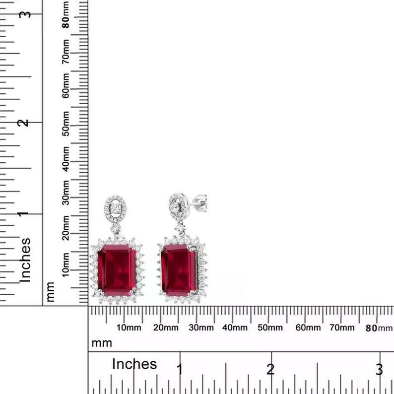 3.4ct Drop Earrings Emerald Cut Pink Ruby Diamond Floral 14k White Gold Finish