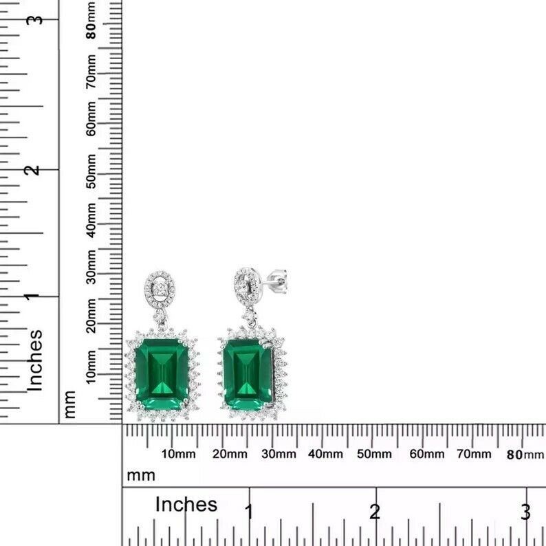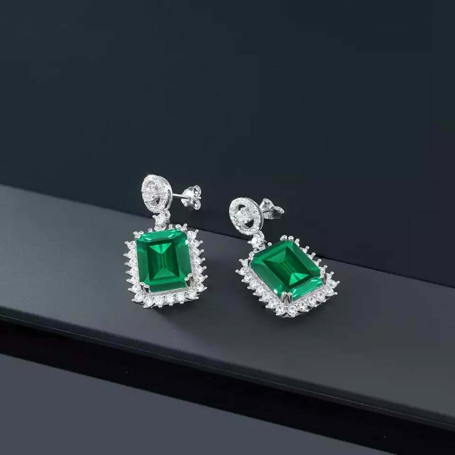 3.4ct Drop Earrings Green Emerald Cut Diamond Floral 14k White Gold Finish