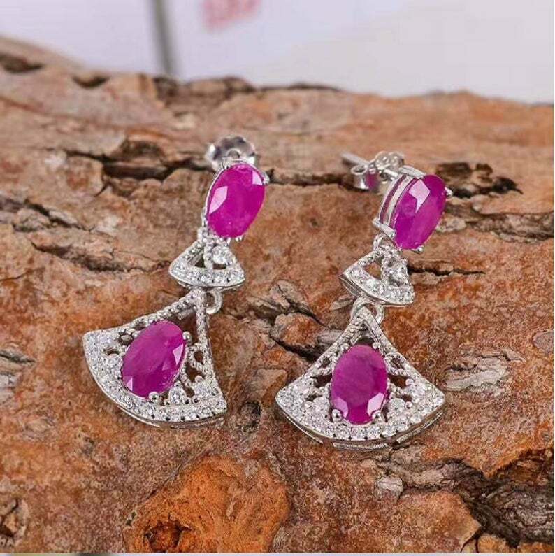 3.5ct Drop Dangle Earrings Oval Cut Pink Ruby Chandelier 14k White Gold Finish