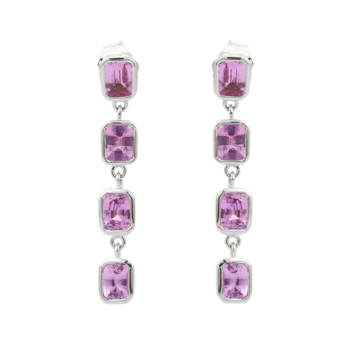 3.5ct Drop Earrings Emerald Cut Pink Sapphire Dangling 14k White Gold Finish