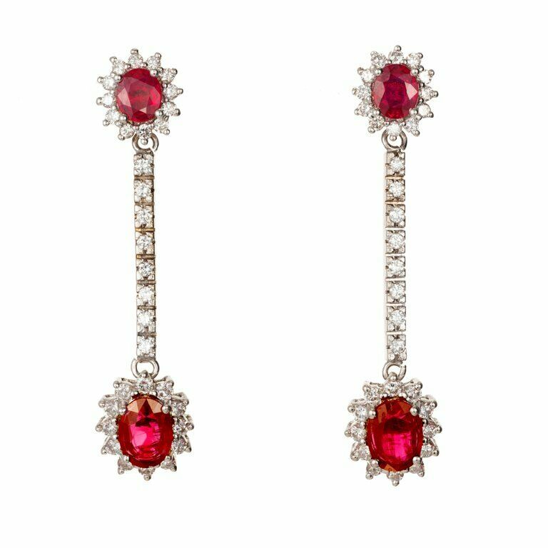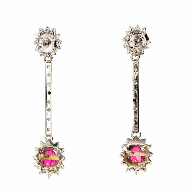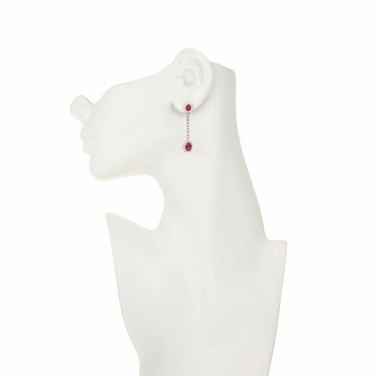 3.5ct Oval Cut Pink Ruby Halo Party Wear Drop Earrings 14k White Gold Finish
