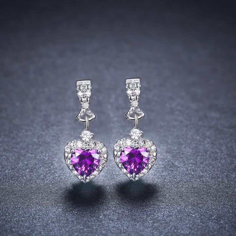 3Ct Heart Cut Purple Amethyst Diamond Elegant Drop Earring 14K White Gold Finish