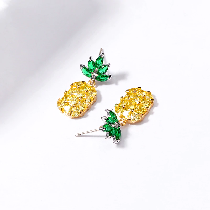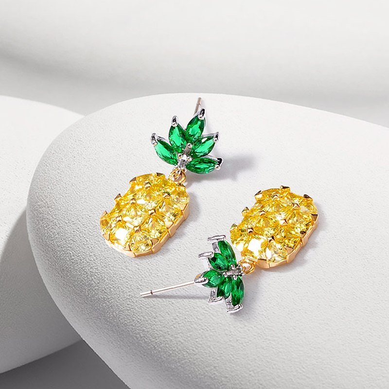 3Ct Princess Cut Yellow Sapphire Pineapple Drop Earrings 14K Dual Tone Finish