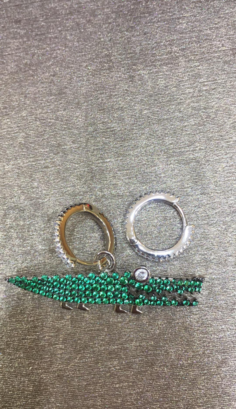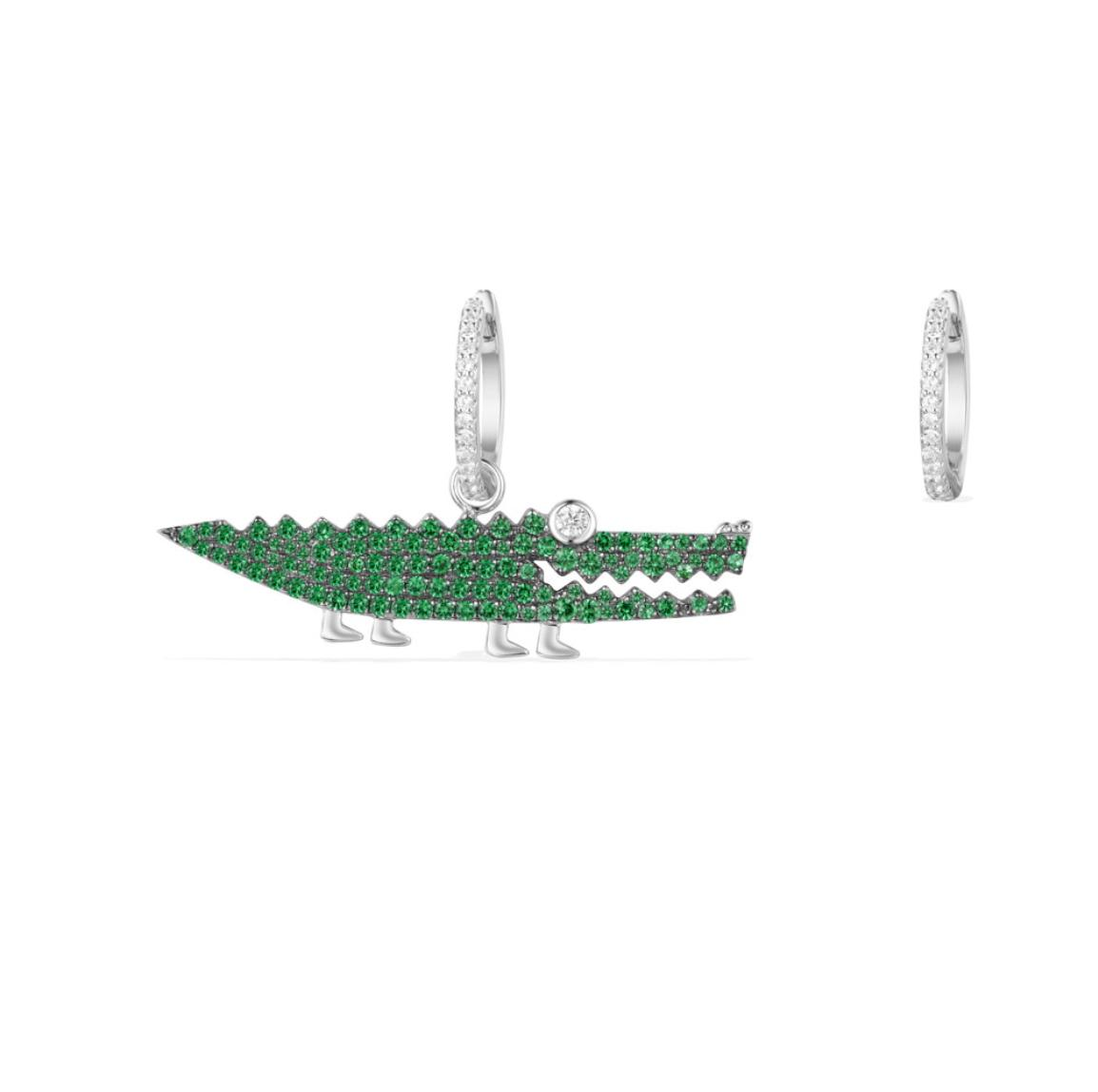3Ct Round Cut Green Emerald Diamond Crocodile Drop Earrings 14K White Gold Over