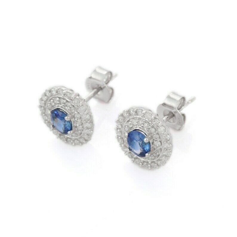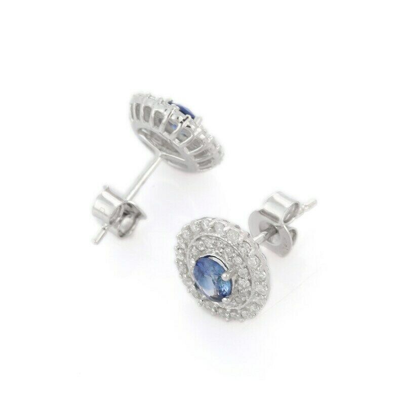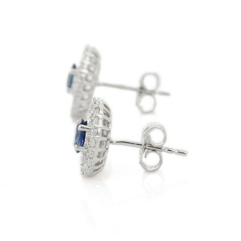 3ct Stud Earrings Oval Cut Blue Tanzanite Dual Halo Cluster 14k WhiteGold Finish