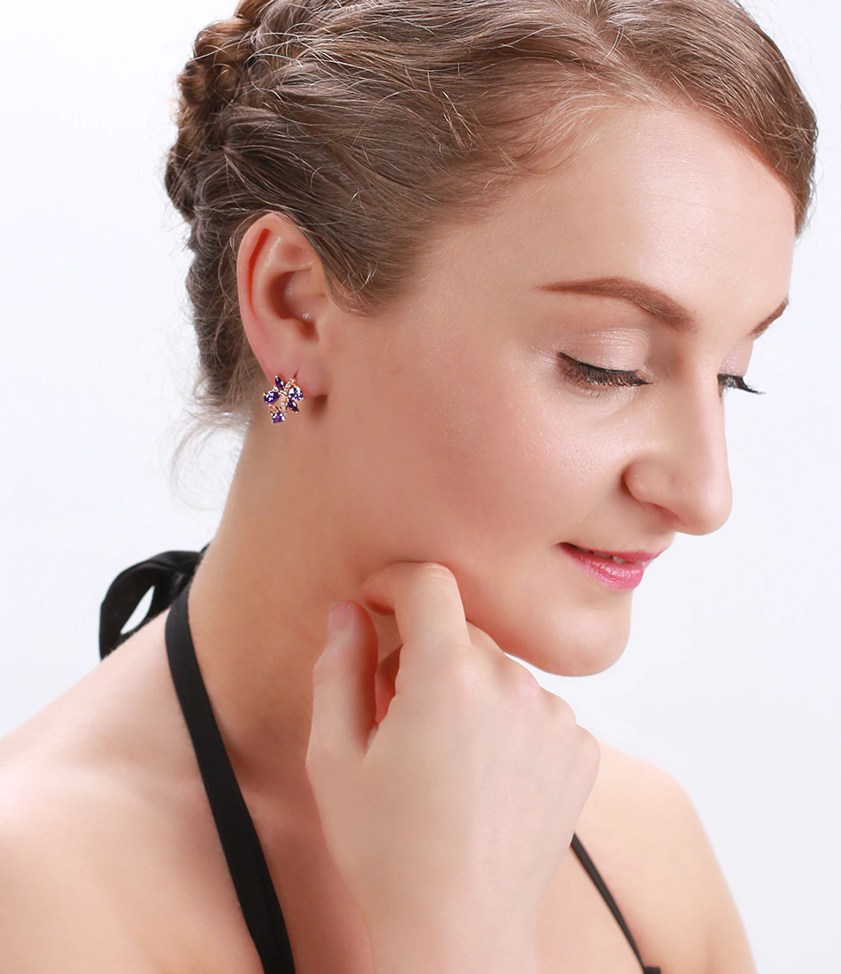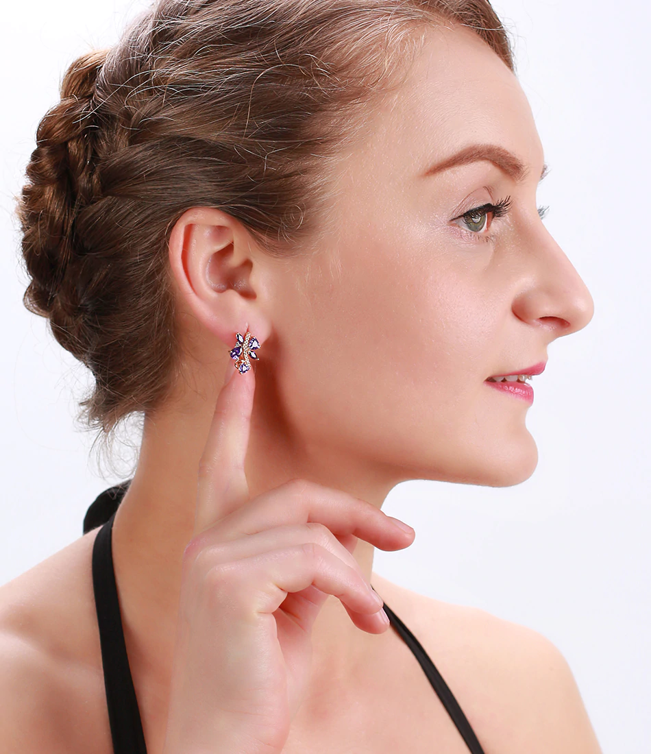 3ct Trillion Cut Purple Amethyst Elegant Party Drop Earrings 14k RoseGold Finish